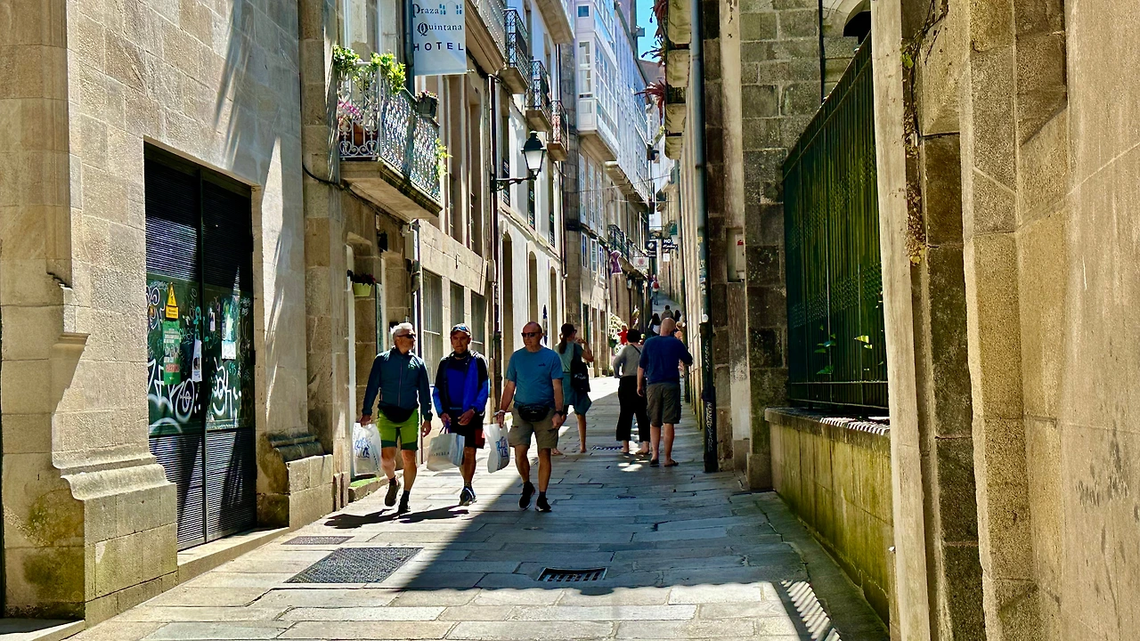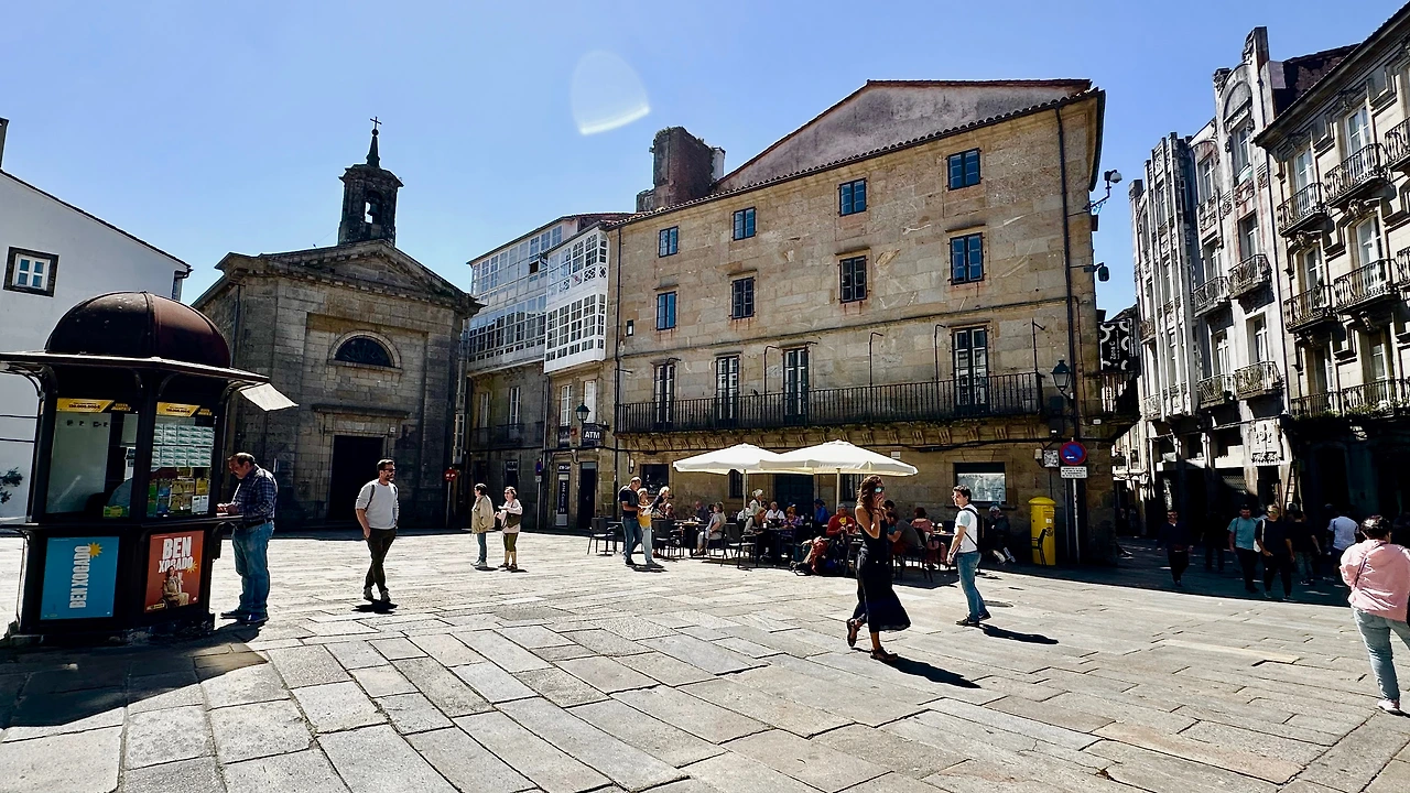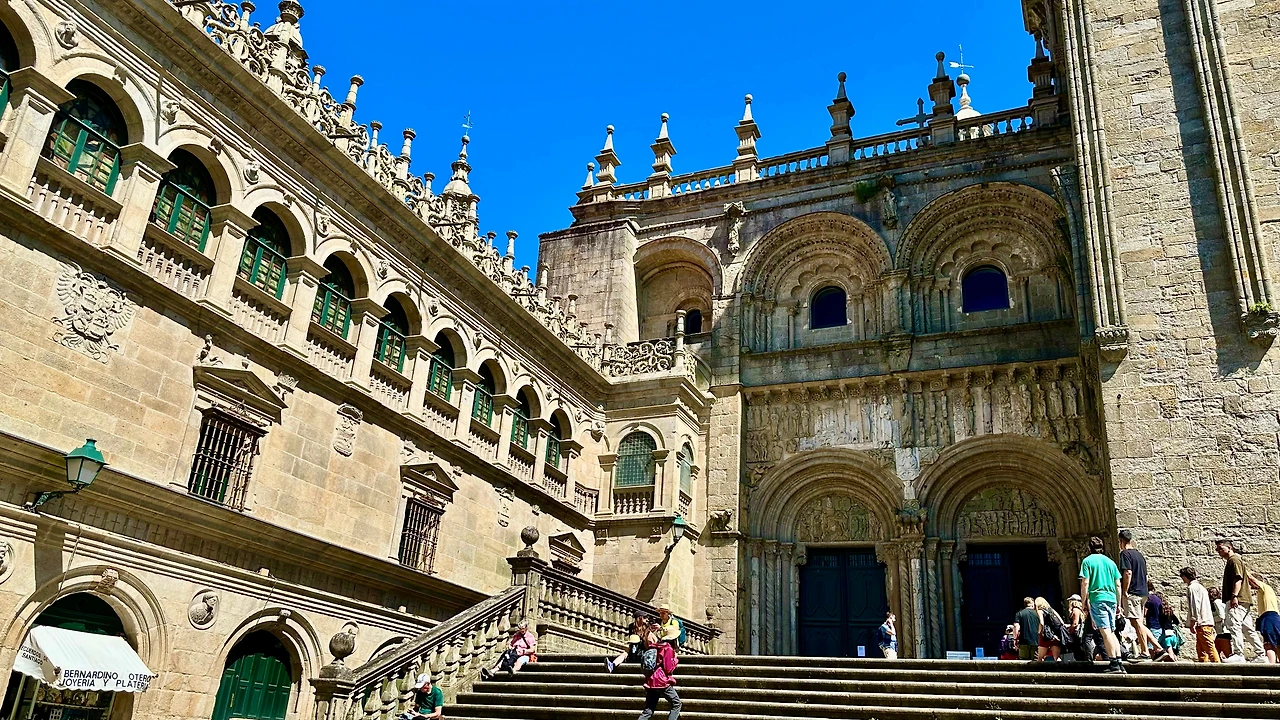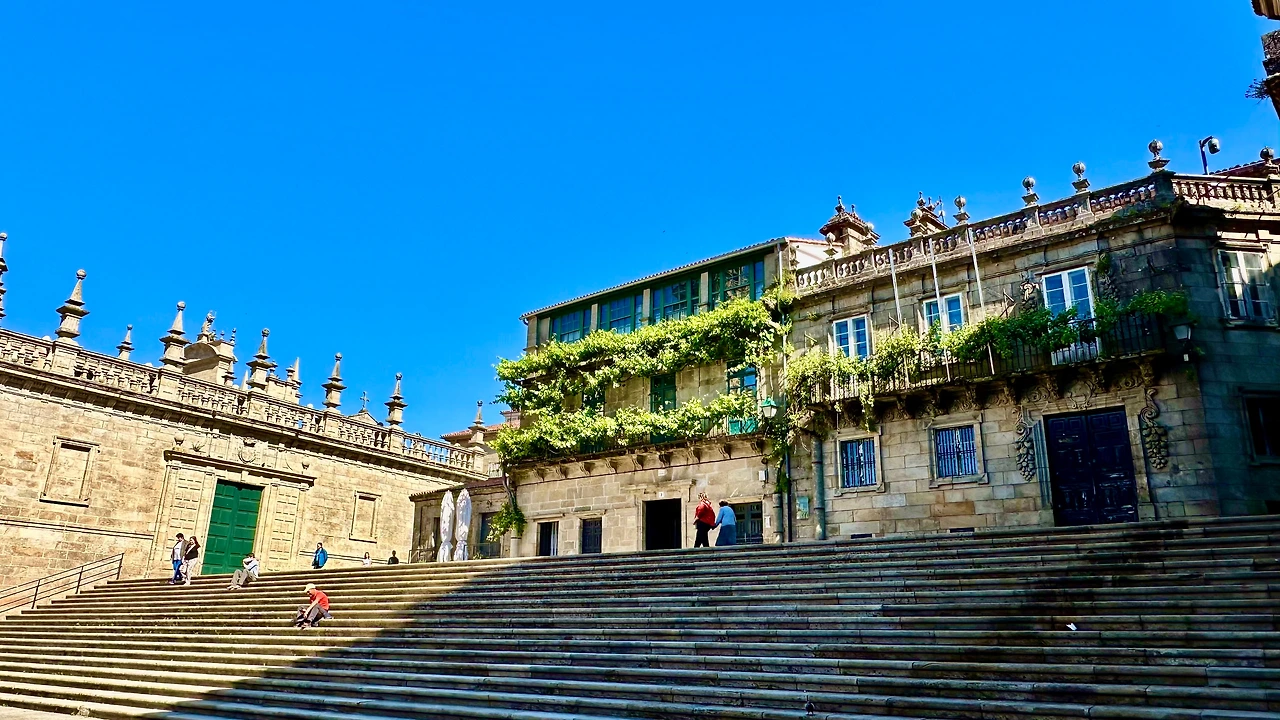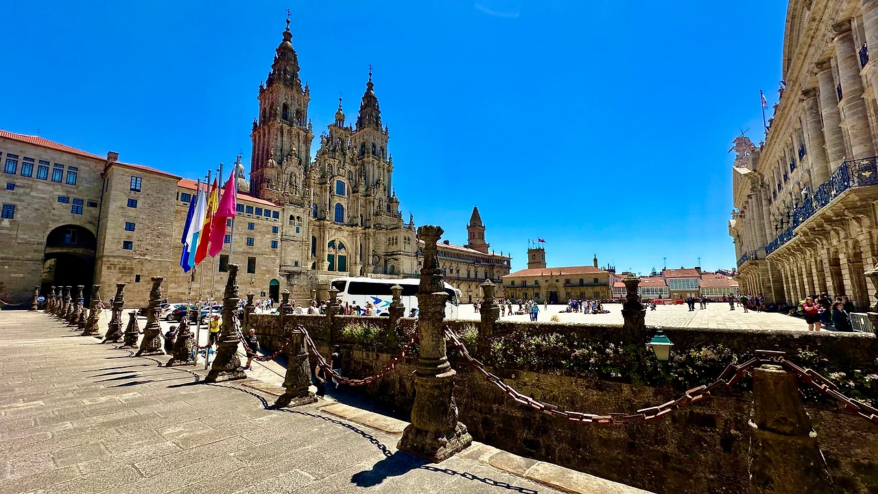 산티아고 데 콤포스텔라 대성당(Catedral Basilica de Santiago de Compostela, 이하 ‘대성당’)과 구 도심지를 탐방하기 위해 호텔을 나선다. 아침 9시가 조금 넘어 호텔 주변에 있는 버스 정류장에서 시내버스를 타고 갈리시아 광장(Plaza de Galicia)에 내린다. 이곳에서 골목길을 따라 500여 미터 걸어가니 대성당이 보인다.