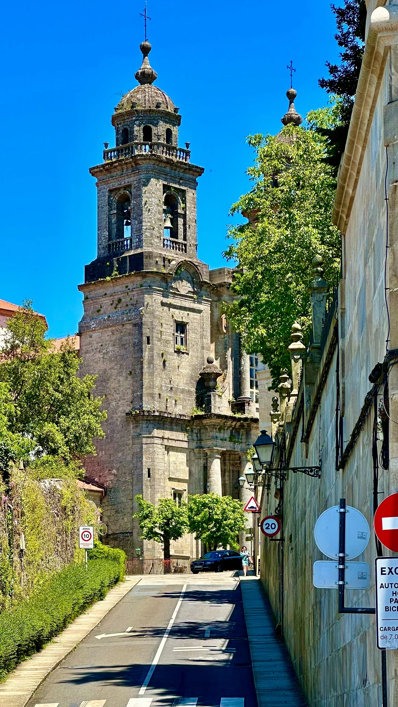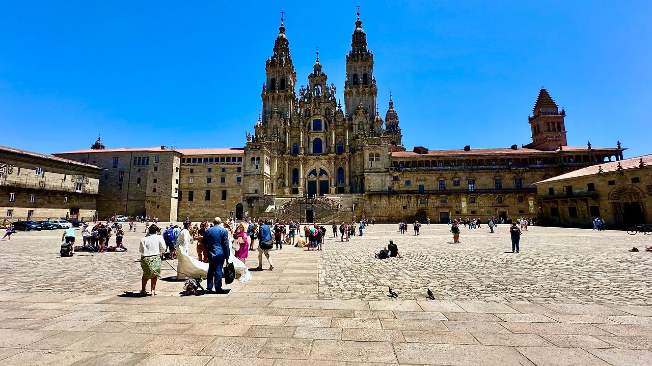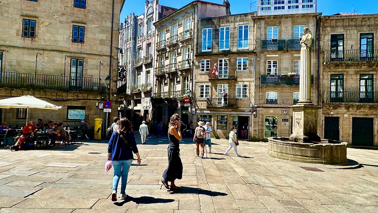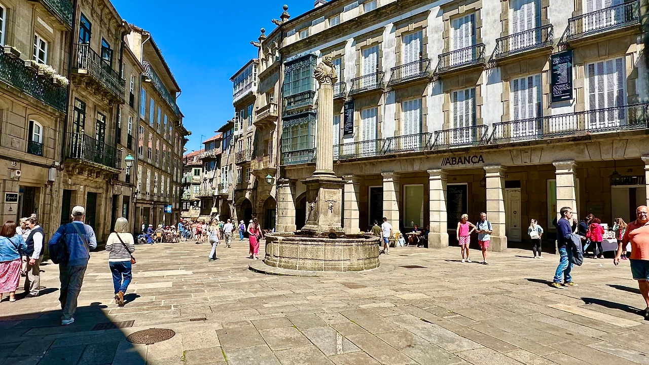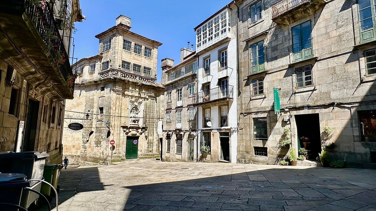 산티아고 데 콤포스텔라 대성당(Catedral Basilica de Santiago de Compostela, 이하 ‘대성당’)과 구 도심지를 탐방하기 위해 호텔을 나선다. 아침 9시가 조금 넘어 호텔 주변에 있는 버스 정류장에서 시내버스를 타고 갈리시아 광장(Plaza de Galicia)에 내린다. 이곳에서 골목길을 따라 500여 미터 걸어가니 대성당이 보인다.