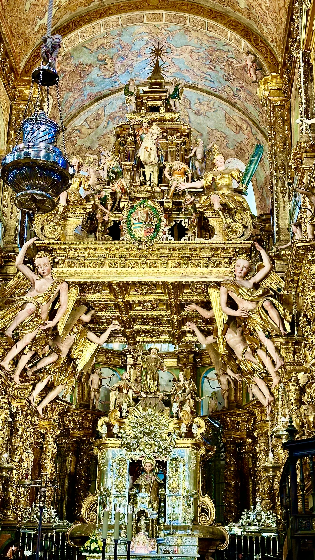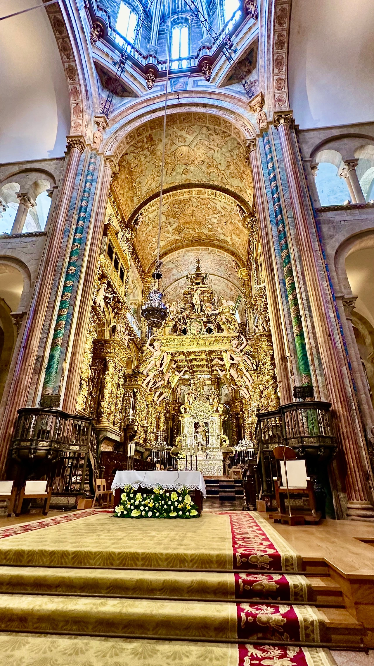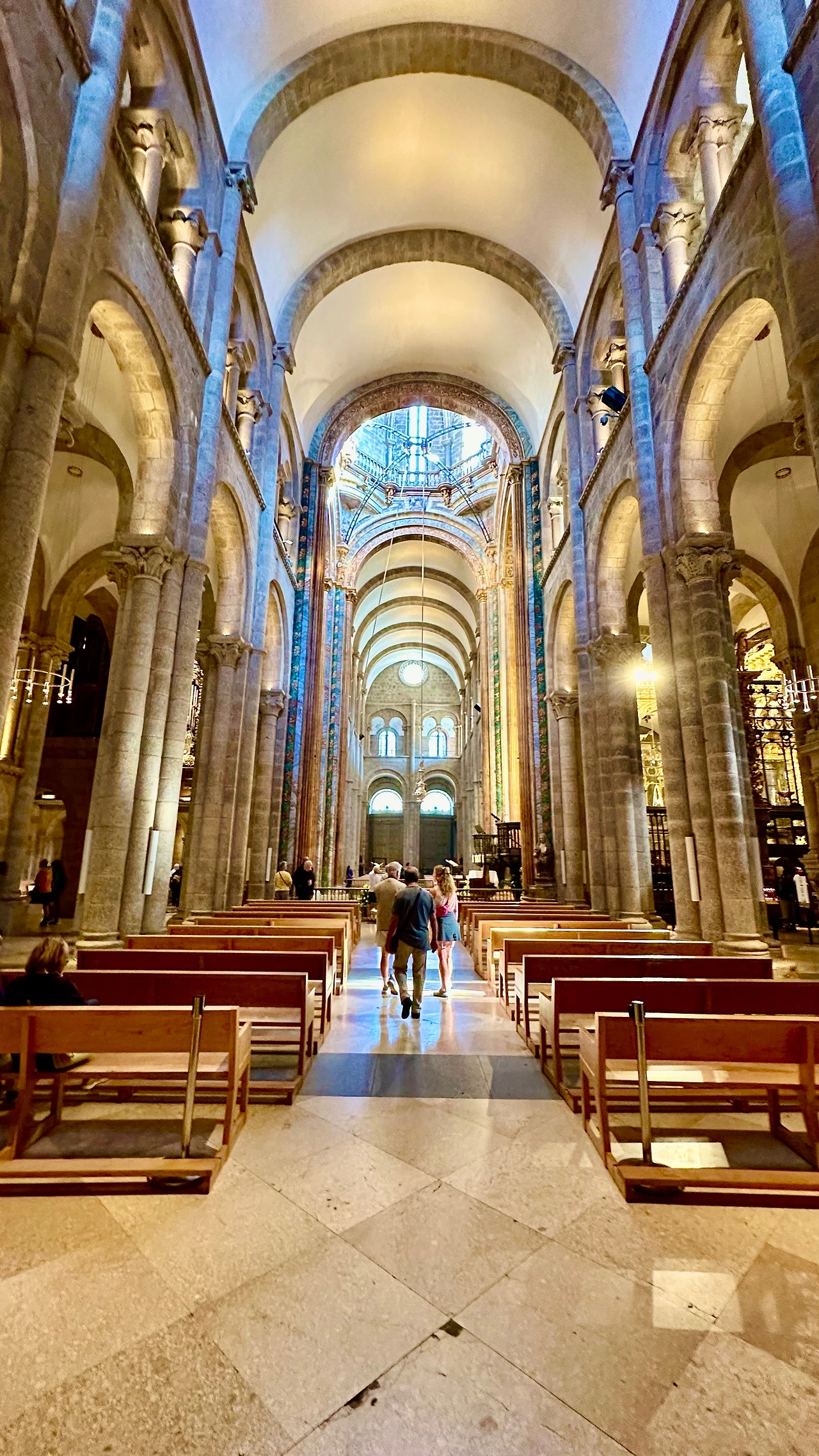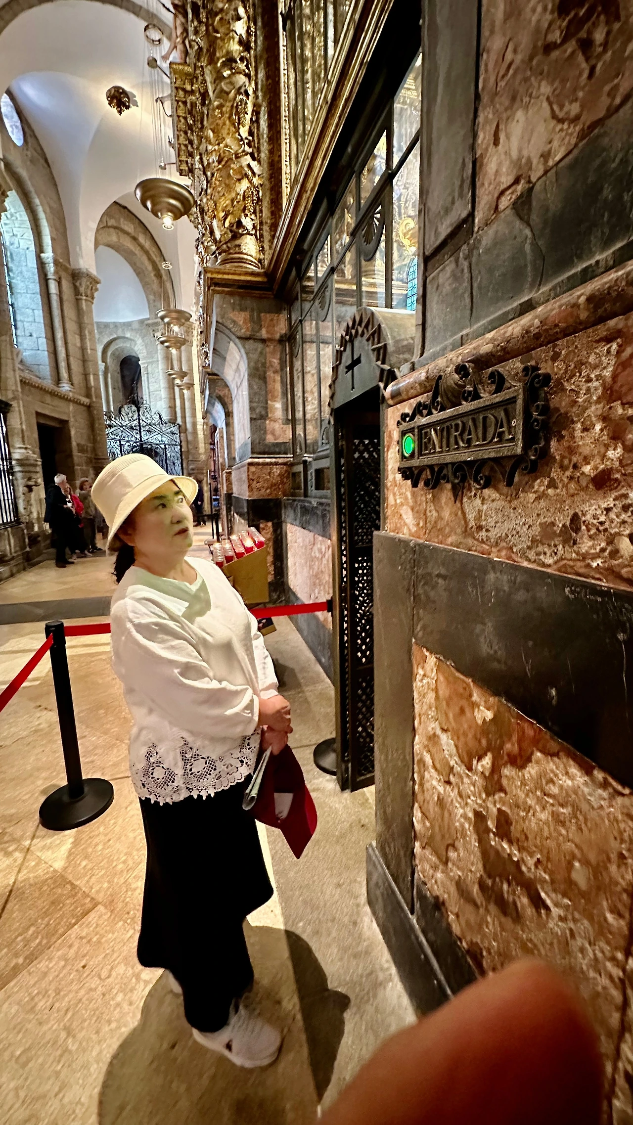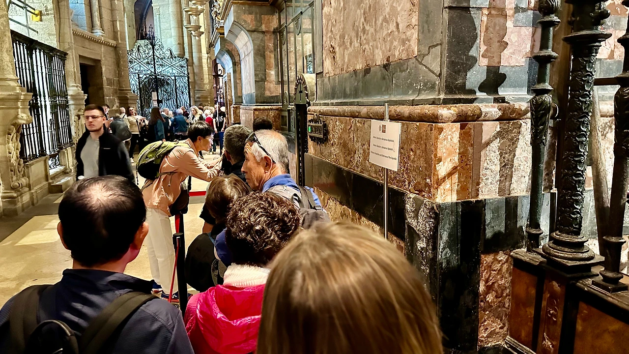 바실리카 높은 곳에 있는 야고보 형성을 뒤에서 안아보고 유해를 보기 위해서는 좁고 긴 줄을 따라가야 한다. 아내와 나는 줄을 서서 따라간다. 앞에는 한국인 여행객들이다.
