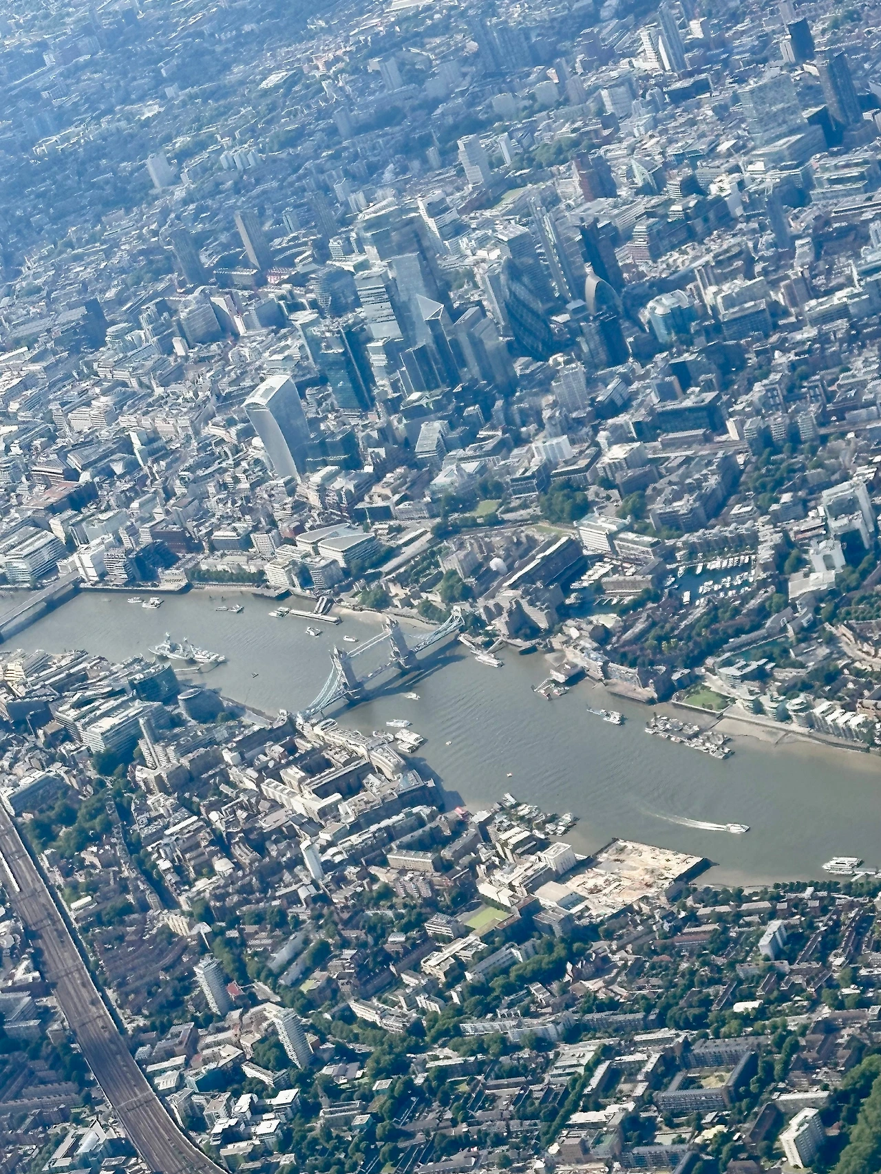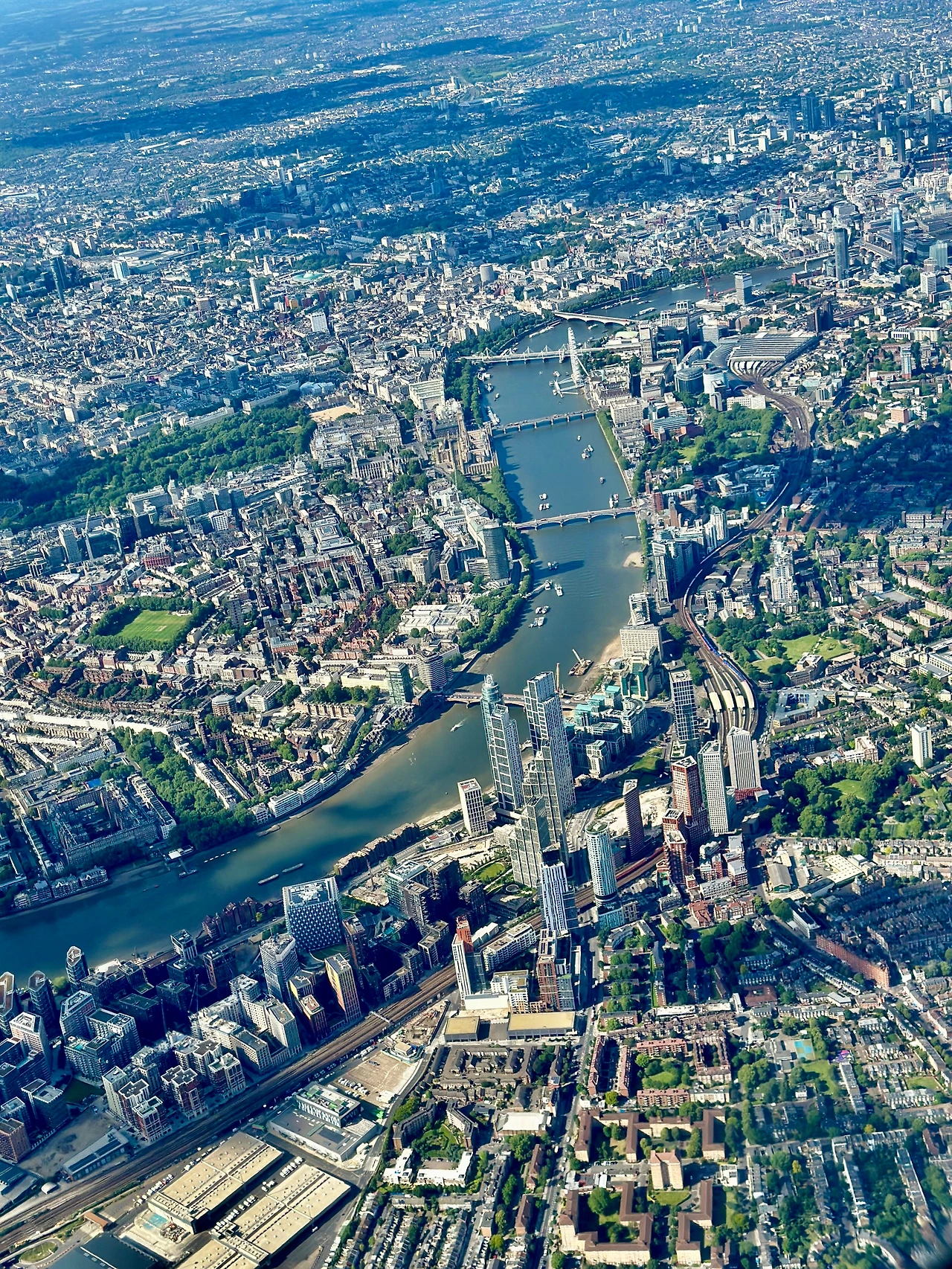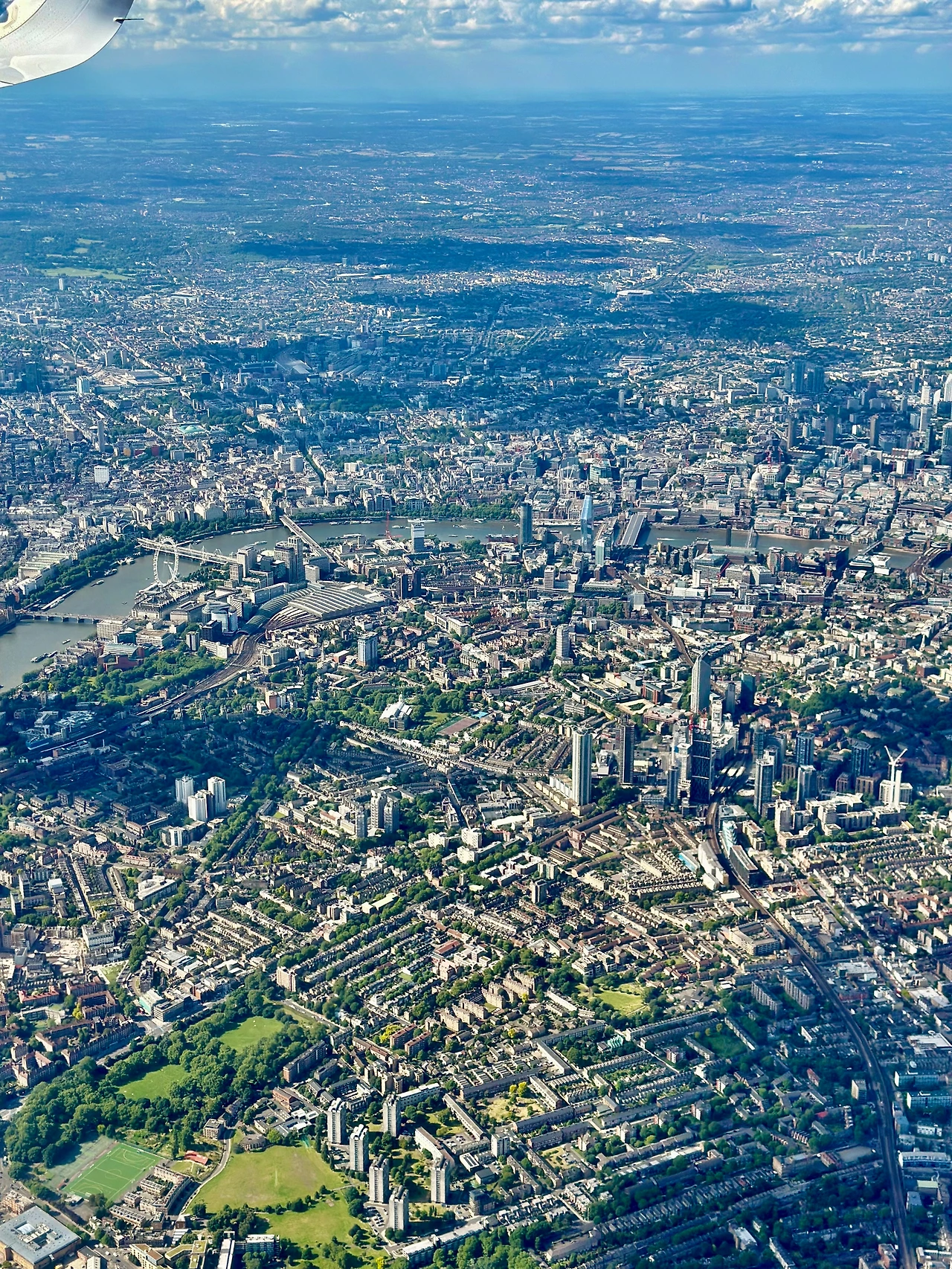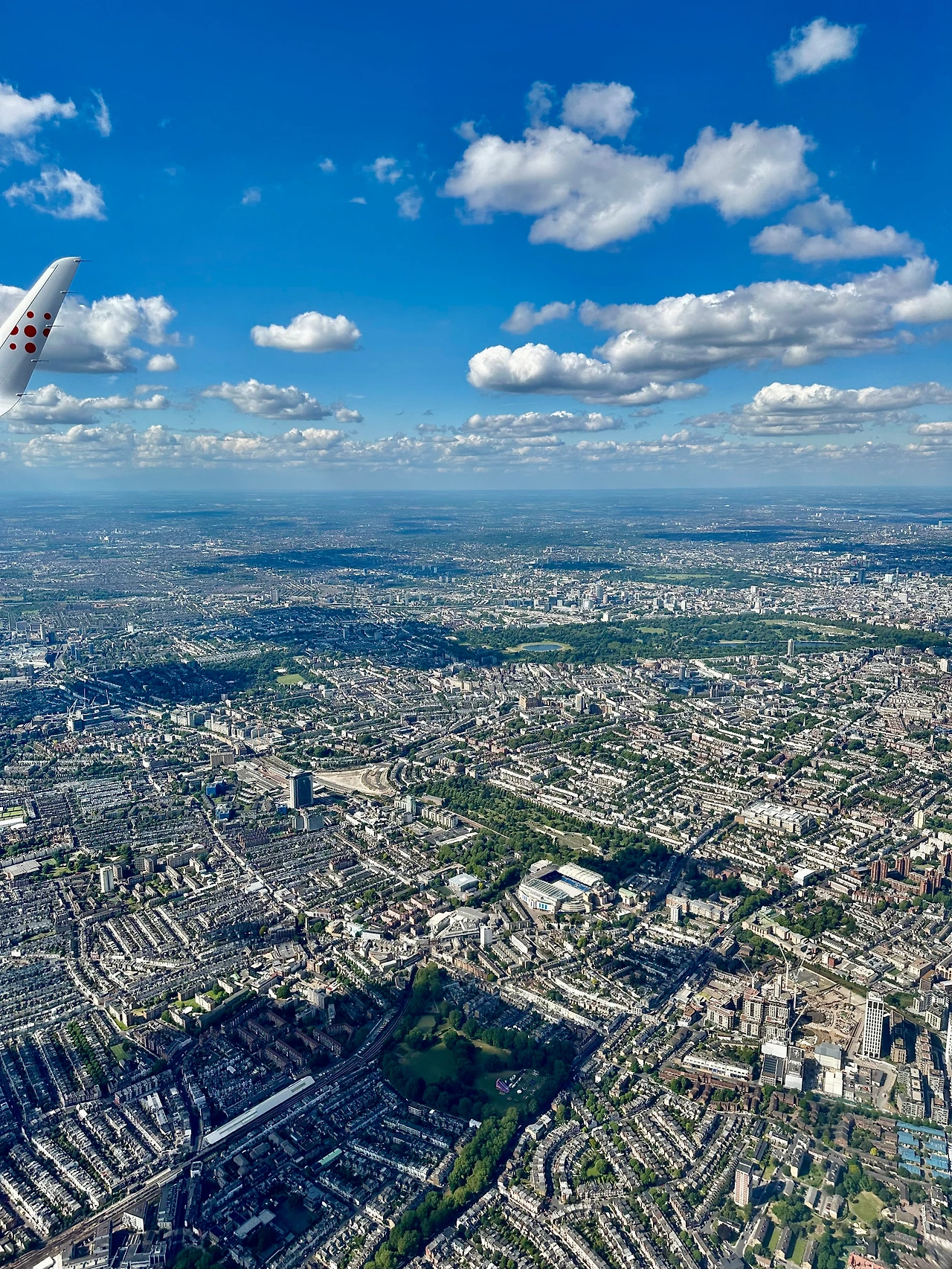 하늘에서 본 런던은 매우 커 보인다. 템즈강도 하늘에서 볼 수 있었고 하이드파크도 보인다. 낮에 도착하니 공중에서 런던의 풍경을 보게 된다.