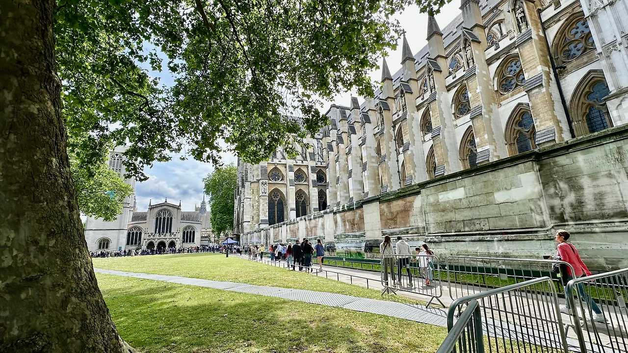 궁전을 떠나 웨스트민스터 사원 쪽으로 간다. 무슨 공원인지는 모르지만 녹지를 가로질러 웨스트민스터 사원에 도착한다. 사원에 입장하려면 사전 예약이 필요한 것인지 많은 사람들이 줄을 서서 일일이 확인을 받은 뒤에 입장한다.