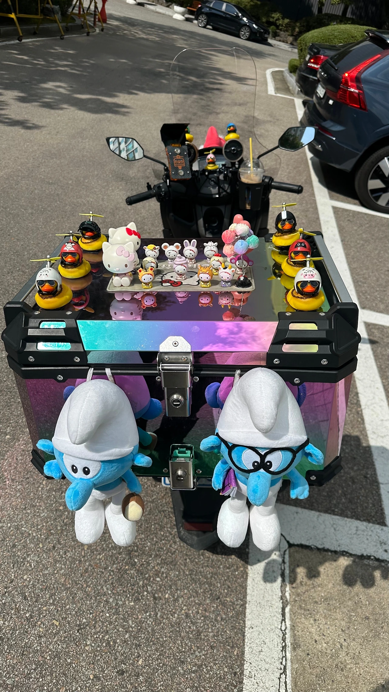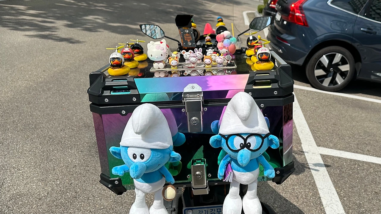 오늘 아침 집 앞에서 만난 화려한 배달 오토바이 .... 추석 이틀 전임에도 불구하고 덥고 습한 날에 마음에 청량감을 준다,
