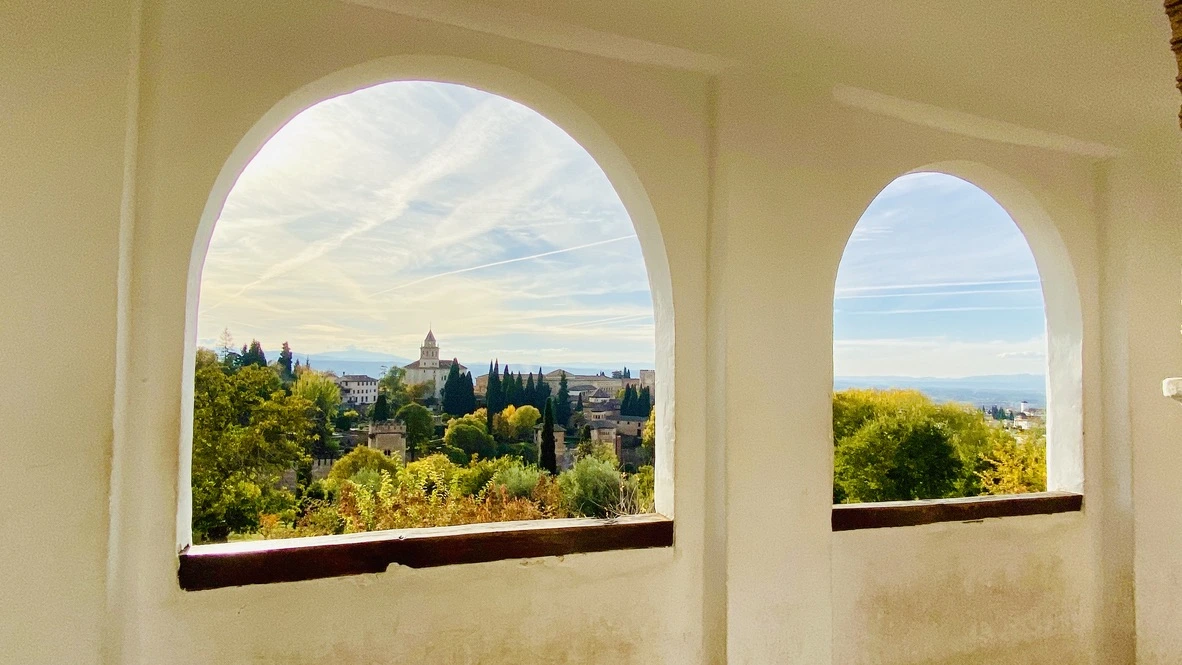 19년 전 만난 알람브라의 가을은 지금보다 더 늦은 11월 하순으로 기억하는데 하루 종일 가랑비가 날려 으슬으슬했다. 그리고 나자레스 궁전 돌 벽에서 느껴지는 냉기가 싫어 궁전의 천정과 벽면의 섬세하고 아름다운 세공을 대충 보고 나온 기억이 있다. 그럼에도 불구하고 가을의 차가운 가랑비 속의 알람브라 궁전은 처연함이 있었다. 그 기억이 추억으로 남아 있다.