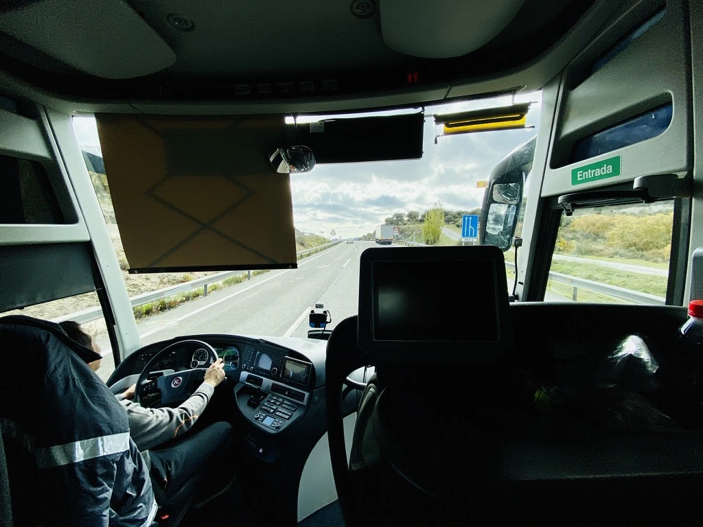 마드리드까지 260킬로 미터 거리이다. 버스로 3시간 간다. 버스의 가장 앞자리에 앉으니 전면 시야가 시원하다. 스페인 고속버스 창은 모두 선팅이 되어있다. 그러나 전면 유리는 그렇지 않아 풍경을 보는데 좋다.