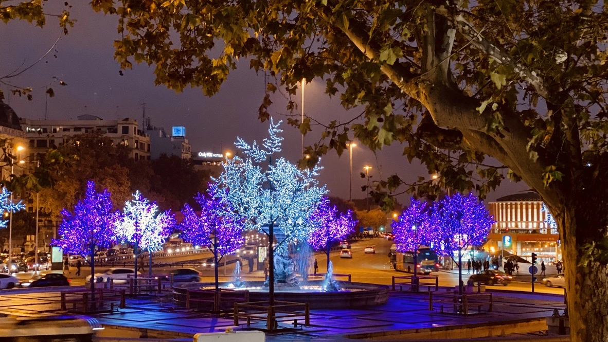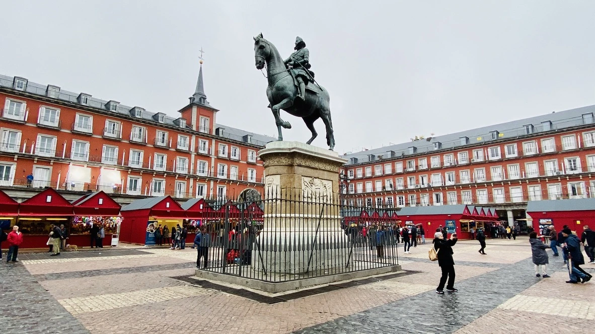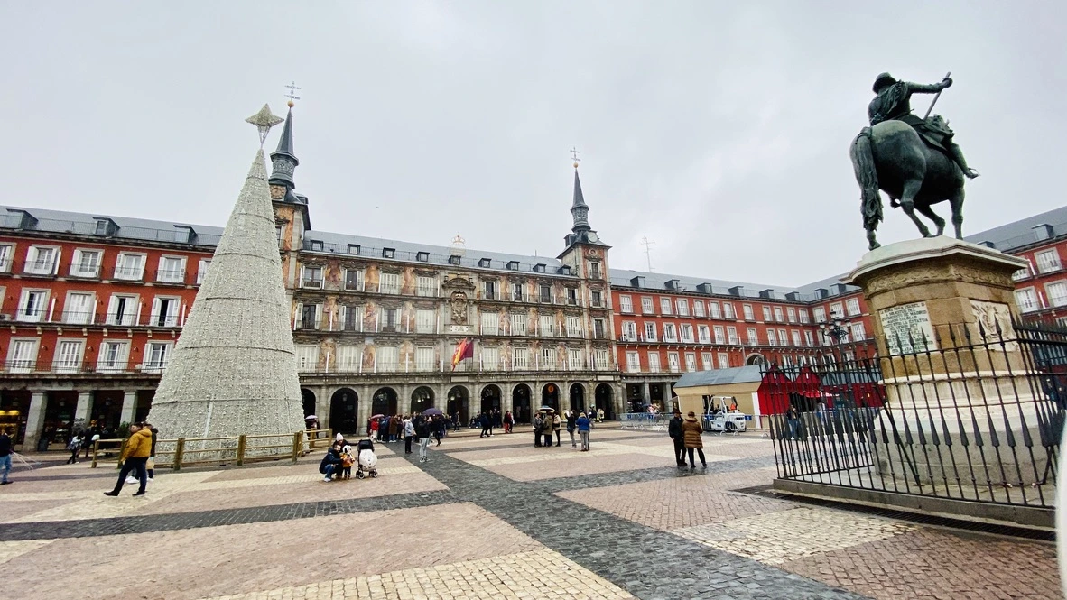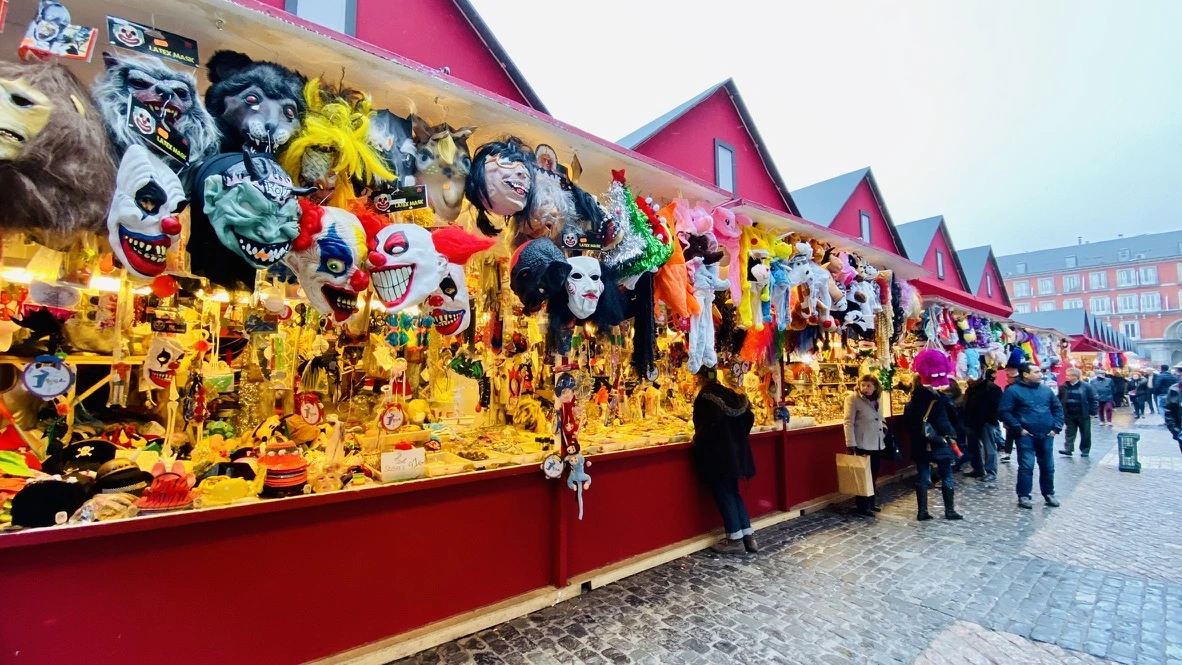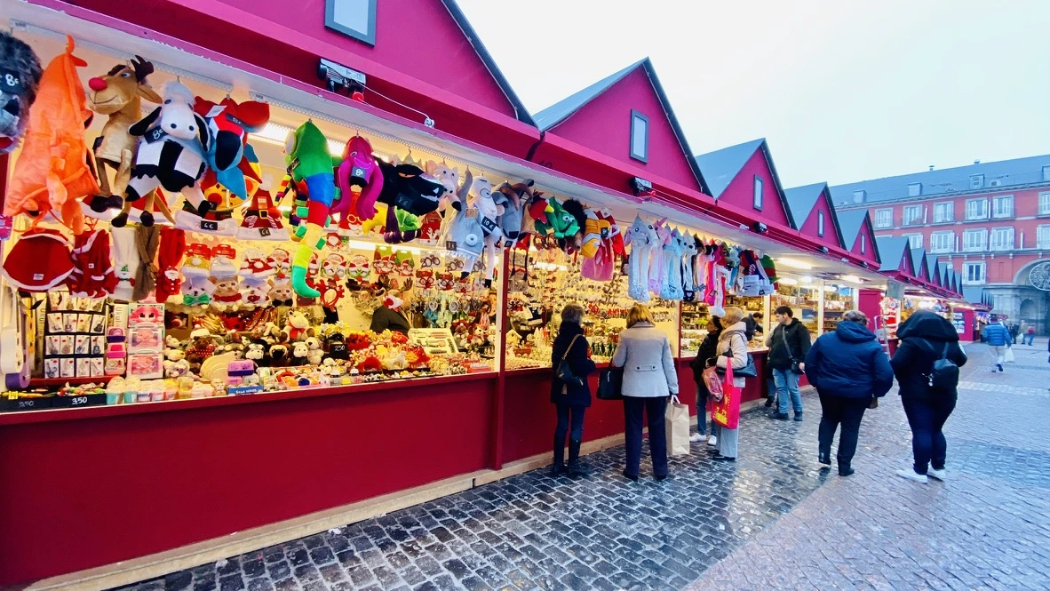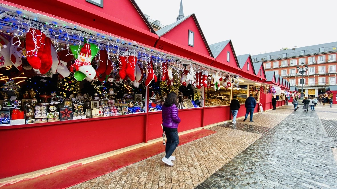 크리스마스 장식품 판매 가게들이 설치된 플라자 마욜