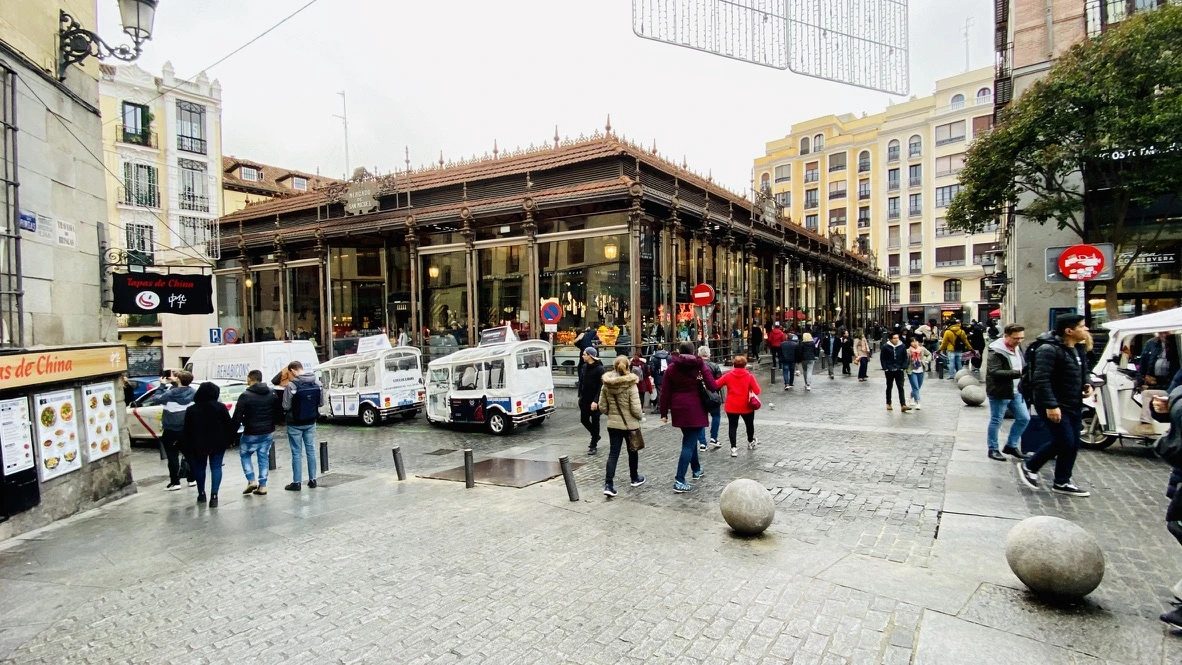 산 미겔 시장은 원래 농산물 시장이었다. 신선하고 잘 길러진 품질 좋은 농산물을 진열해 팔았다. 우리가 마드리드 살 때 주말에 종종 와서 야채 등 농산물을 샀다. 특히 서양 사람들이 크게 선호하지 않는 단감과 장두감을 팔았다. 말 그대로 재래시장이다. 발렌시아 중앙시장과 같은 곳이다. 규모만 작을 뿐이다. 항상 주차가 쉽지 않아서 주변 어느 지하주차장에 차를 주차하고 걸어왔다. 그러던 곳이 타파스 바로 바뀌어 관광명소가 되어 버렸다. 특히 플라자 마욜의 3~4백 미터 반경에 위치하고 있다.
