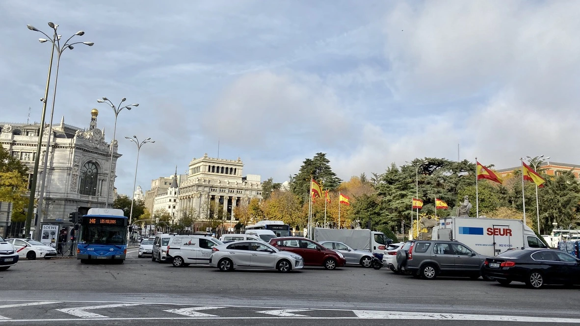 파세오 프라도에서 보는 카스테야노(Castellano) 대로 풍경도 가을 일색이다. 9시 조금 넘은 시각이니까 아침 출근 시간은 조금 지났지만 차량 행렬이 바쁘다. 마드리드의 교통체증은 서울보다는 덜 하지만 출퇴근 시간 경우에는 상당한 것으로 보인다. 그럼에도 불구하고 멀리 보이는 거리 풍경은 햇살을 받아 환하다. 가을을 담뿍 담고 있다. 청명하다.