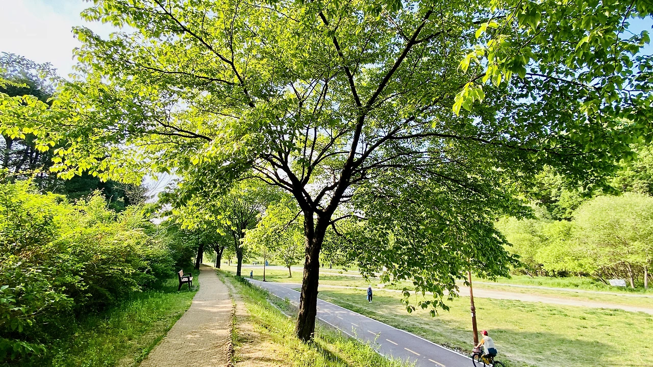 탄천 산책로에서 보는 불곡산 자락도 이제 신록의 나무로 풍성해졌다. 얼마 전까지 산 등성이에 나목들이 앙상하게 줄 서 있는 것들이 보였는데 언제 저렇게 신록으로 입혀졌는지 신기하다. 저 산에는 산 밤나무가 많다. 가을에 산책하다 보면 산등성이에서 밤송이들이 떨어져 있다. 주워서 먹기도 한다.