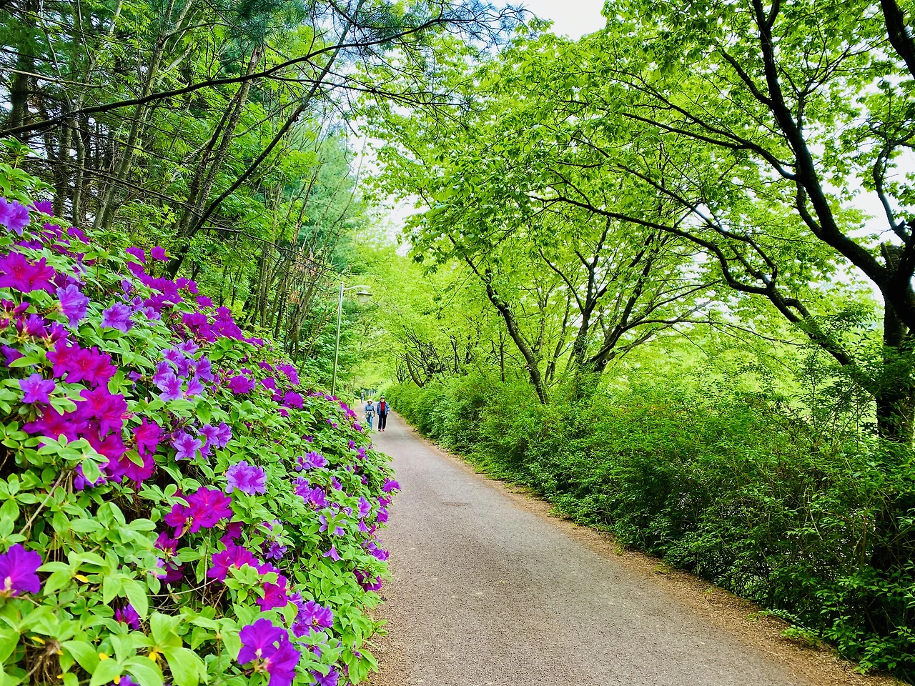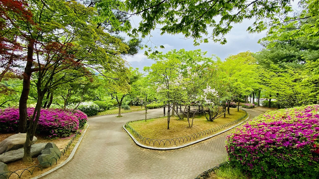 5월 첫 일요일 오후 후덥지근한 날씨에 동네 탄천 소공원 5월의 신록은 찬란했다. 어제 오후도 산책을 했건만 이렇게 하루가 다르게 풍경이 달라졌을까? 구름이 깔린 날이었지만 파릇한 녹색 이파리들이 화려하게 마음에 들어와 박힌다. 신록의 5월이다. 이 신록도 중순이 지나면 더 어두워진 녹색으로 바뀔 것이다. 4월 중순부터 피기 시작한 철쭉꽃의 색갈이 바래고 철쭉꽃 사이로 신록의 이파리가 나오고 있다.
