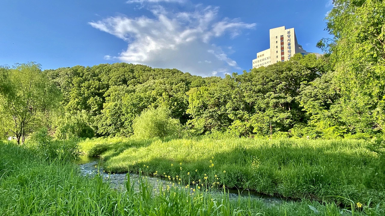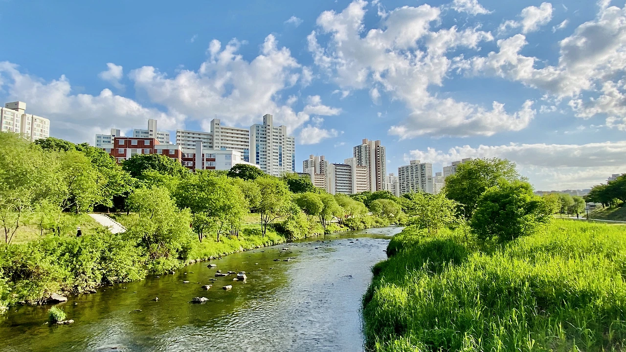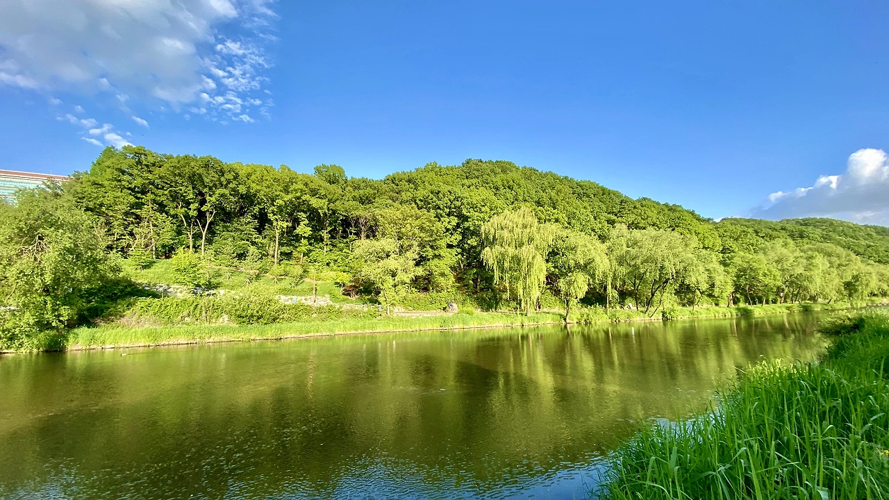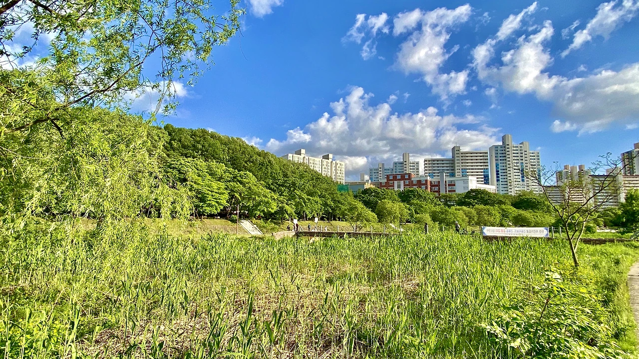 그래서 당초 오늘 계획에 없었던 탄천 산책을 독서회 모임 시간인 오후 5시 30분에 나왔다. 꼭 그렇게 맞춘 것이 아니고 나오다 보니 그렇게 되었다는 것이다. 뜻밖에 햇빛도 좋고 공기가 맑으며 시원한 바람도 알맞게 분다. 무엇보다도 푸른 하늘에 구름이 널려있어 상쾌한 느낌을 준다.