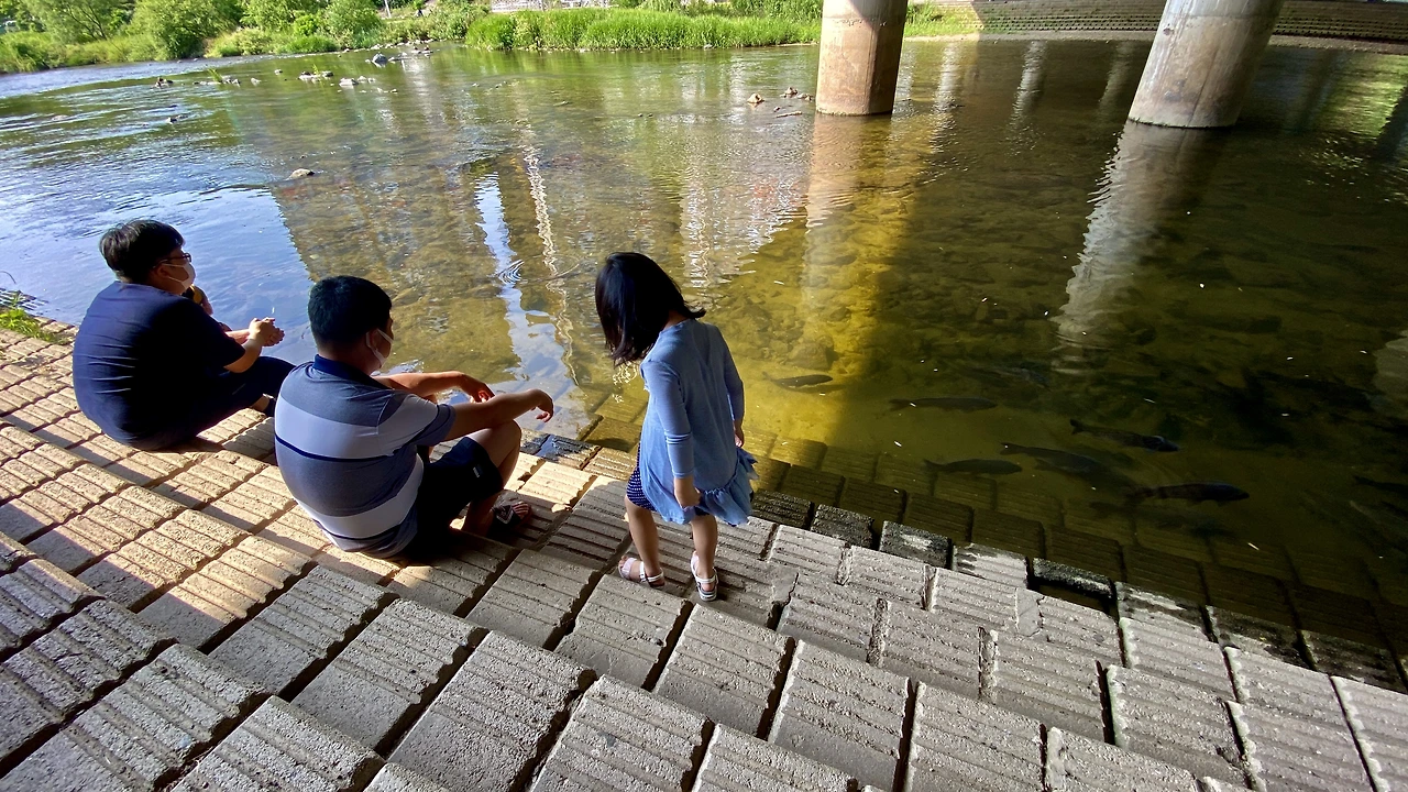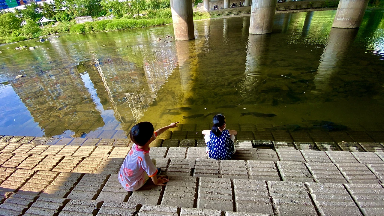다리 밑에서 조그만 아이들이 잉어를 보고 즐거워한다. 아이가 잉어 밥을 던져주니 떼로 몰려다닌다. 문득 아내에게 '우리는 손주들을 언제쯤 보려나?' 하고 물어본다. 아내는 씩 웃기만 한다.