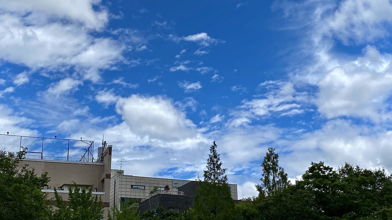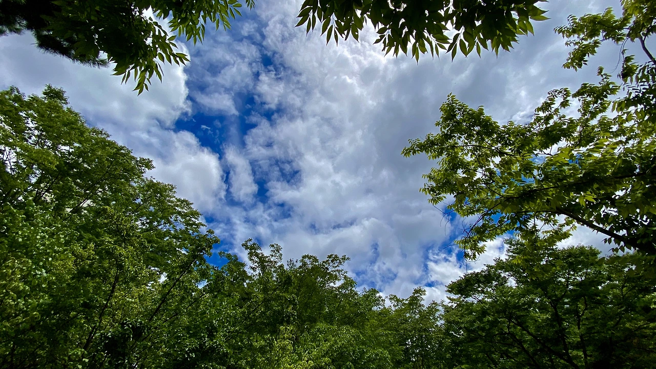 하얀 뭉게구름이 아니고 꼭 비를 품은 듯한 다소 어두운 흰구름이 넓게 펴져있다. 그러나 대기가 맑아서인지 그 구름의 모습과 흐름이 너무 선명하다.