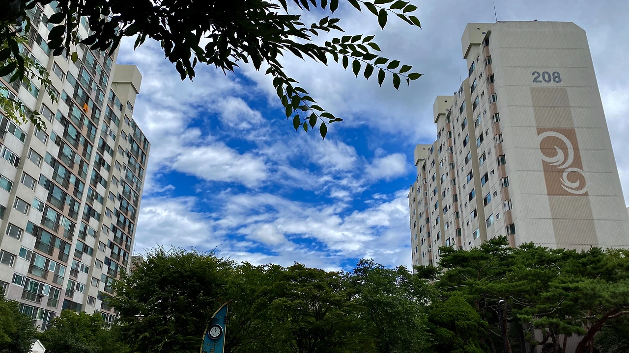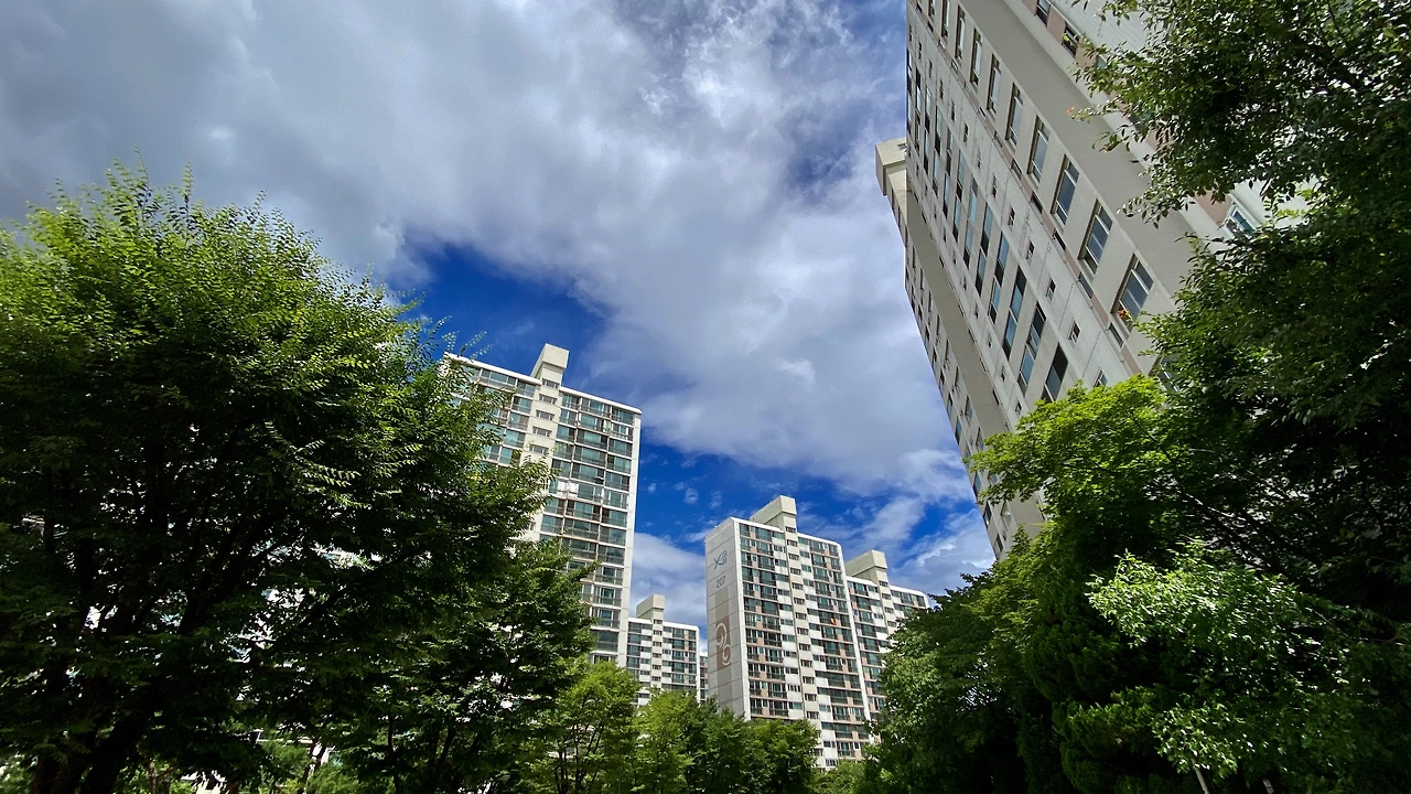 살벌한 시멘트 아파트 사이로 보는 하늘도 떼어놓고 보면 한 폭의 자연 그림이다.