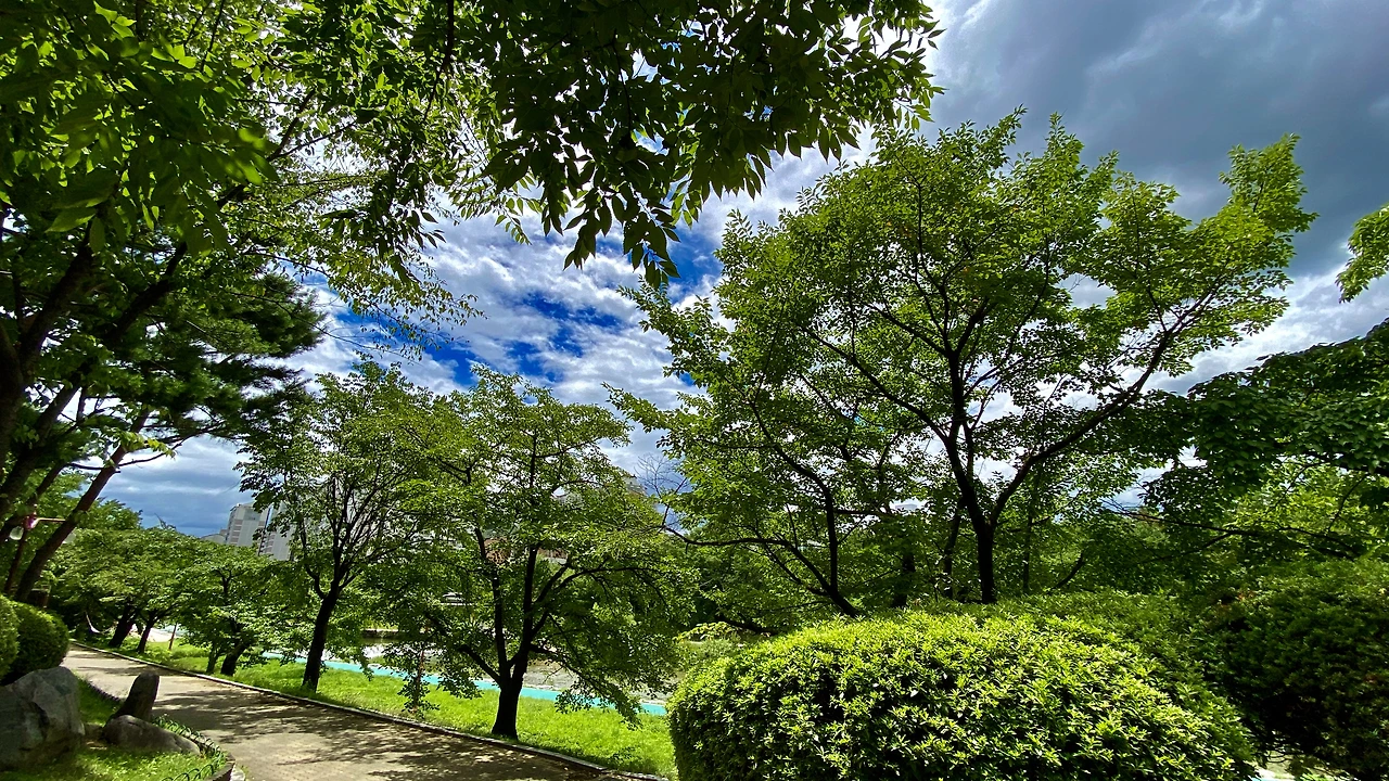 길 건너 소공원 나무들 사이로 보는 하늘은 또 어떻고......