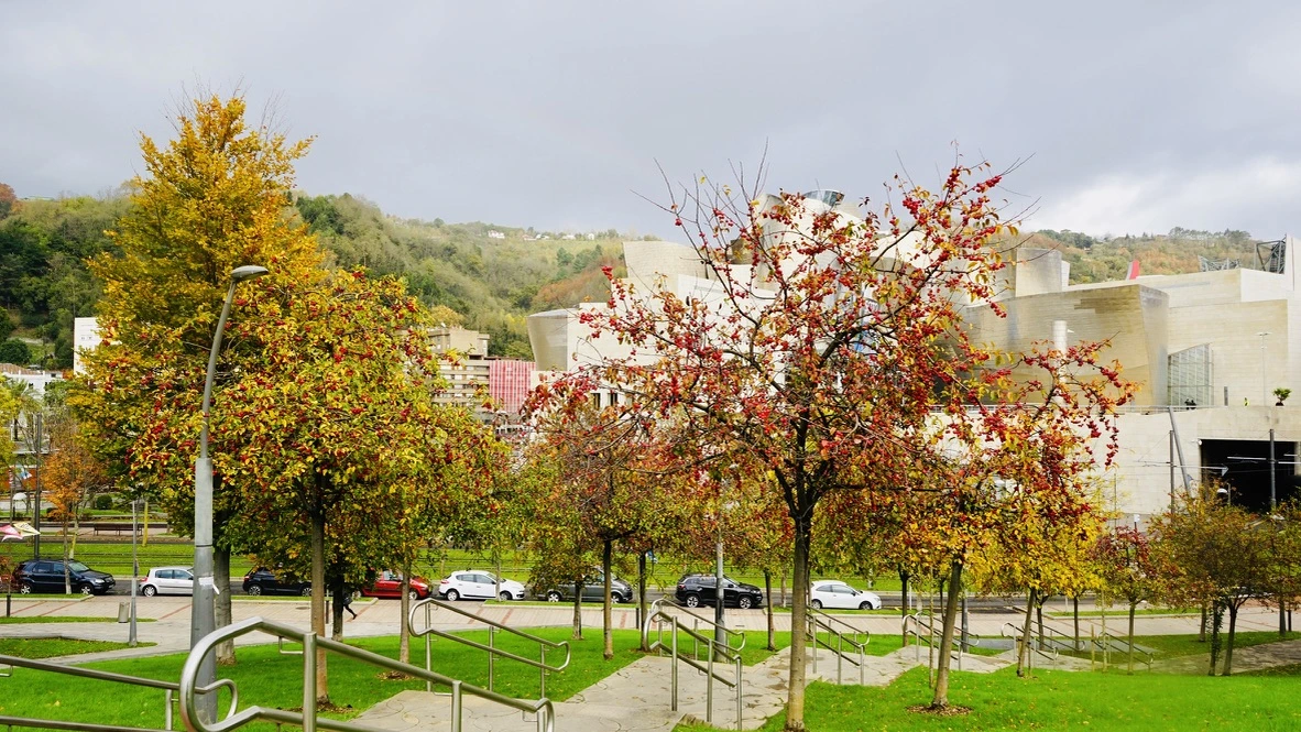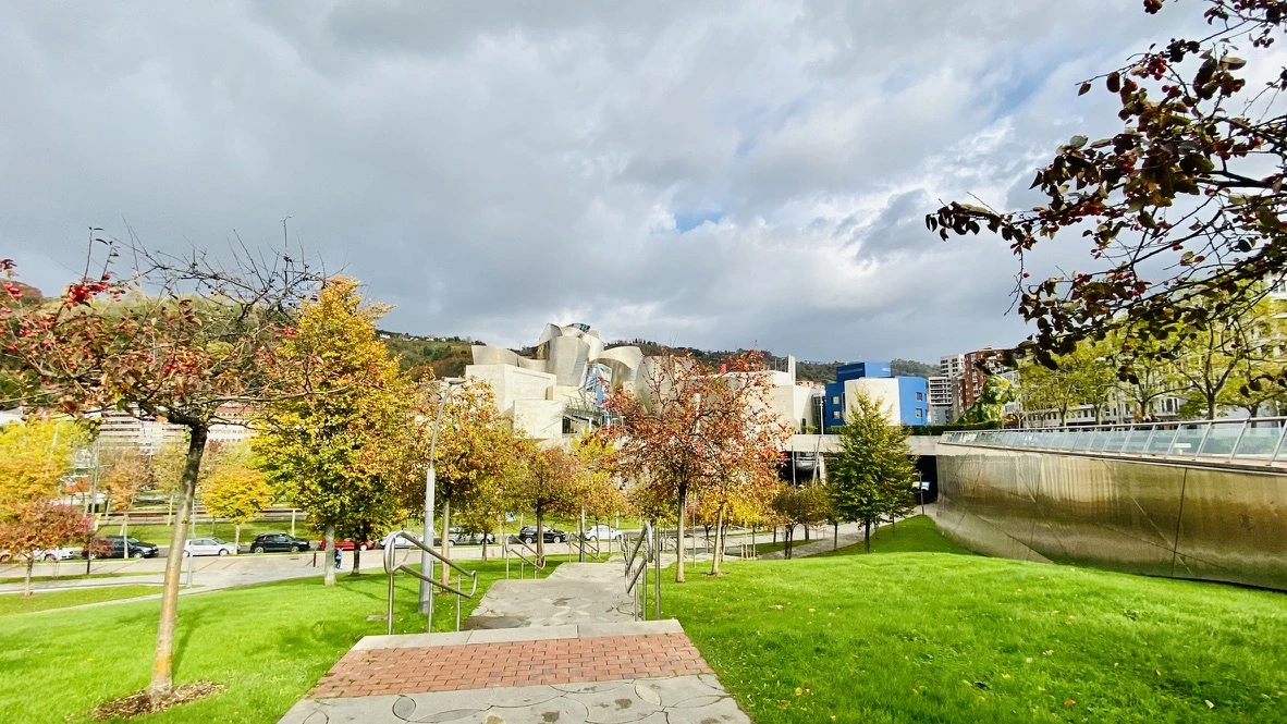 구겐하임 미술관은 건물 그 자체도 20세기 명작으로 알려져 있지만 강변의 풍경과 아주 잘 어우러져 있다. 주변의 늦가을 풍경과 함께 아주 아름답고 조화롭다.