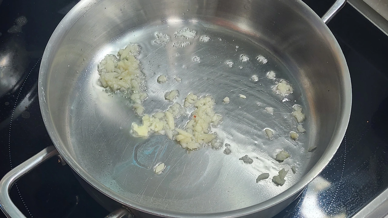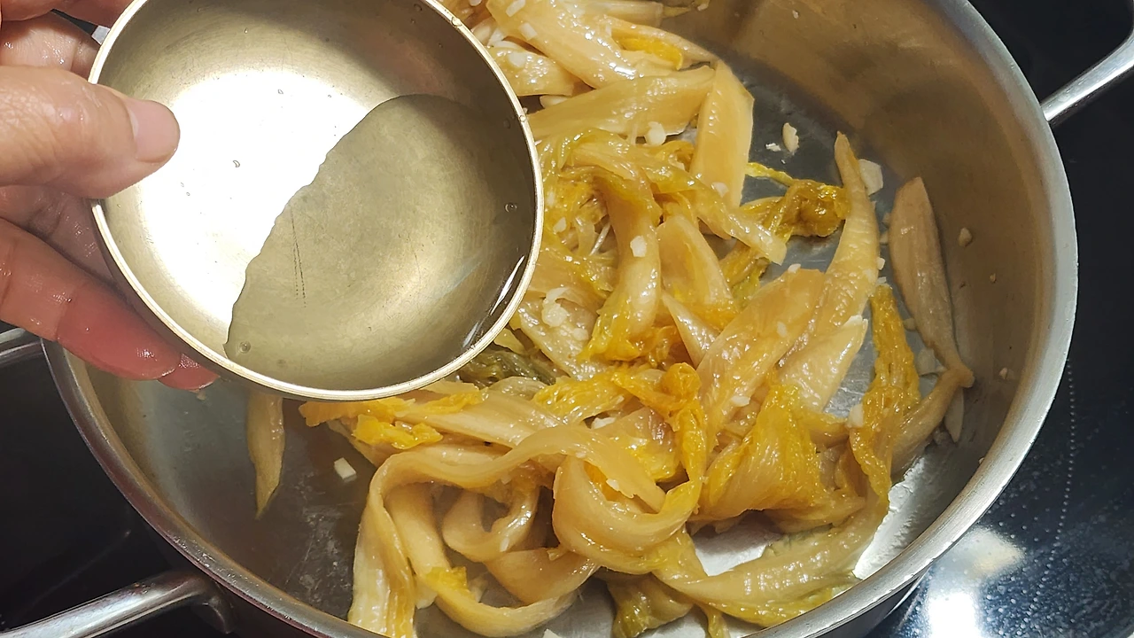 3. 식용유를 두르고 마늘, 묵은지를 넣고 볶아준다