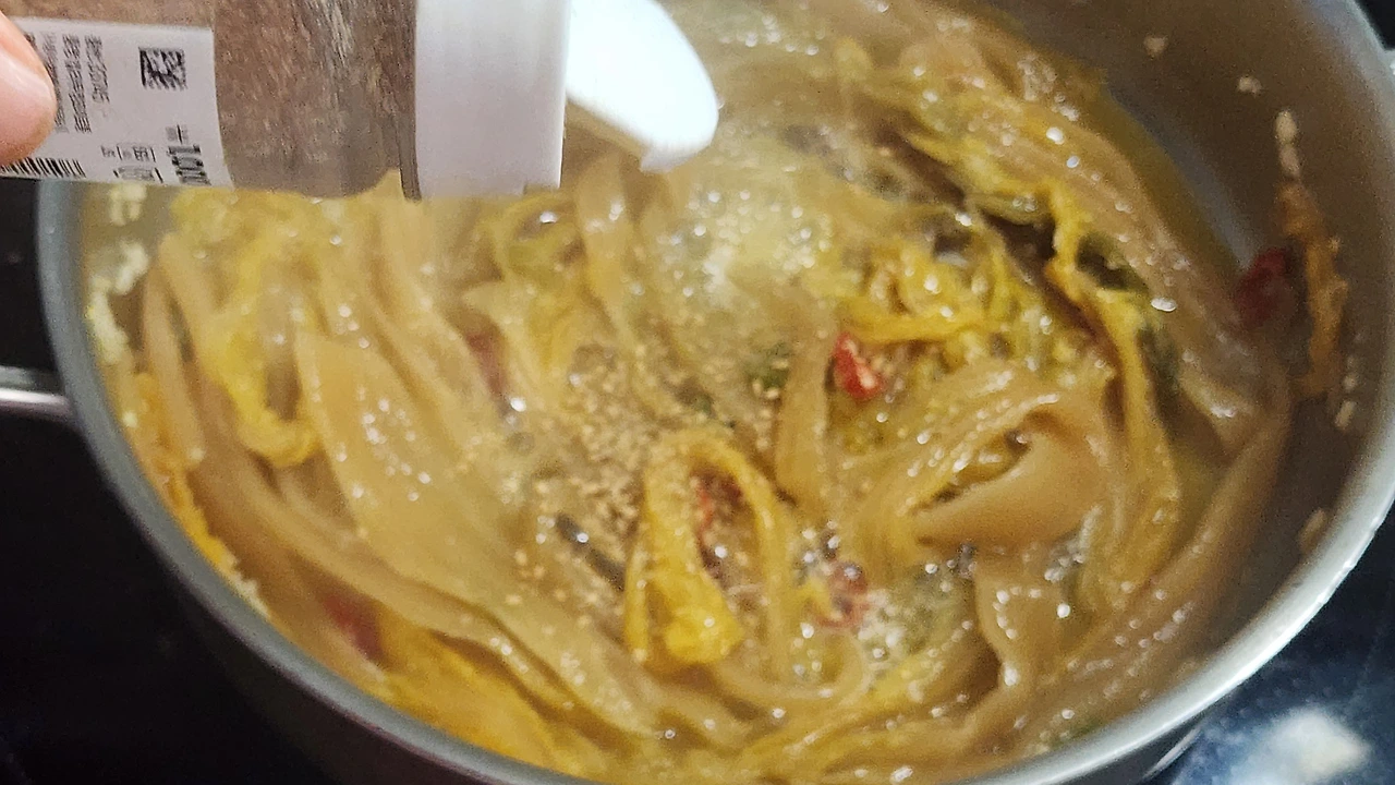 6. 들기름과 깨소금을 넣고 볶아준다