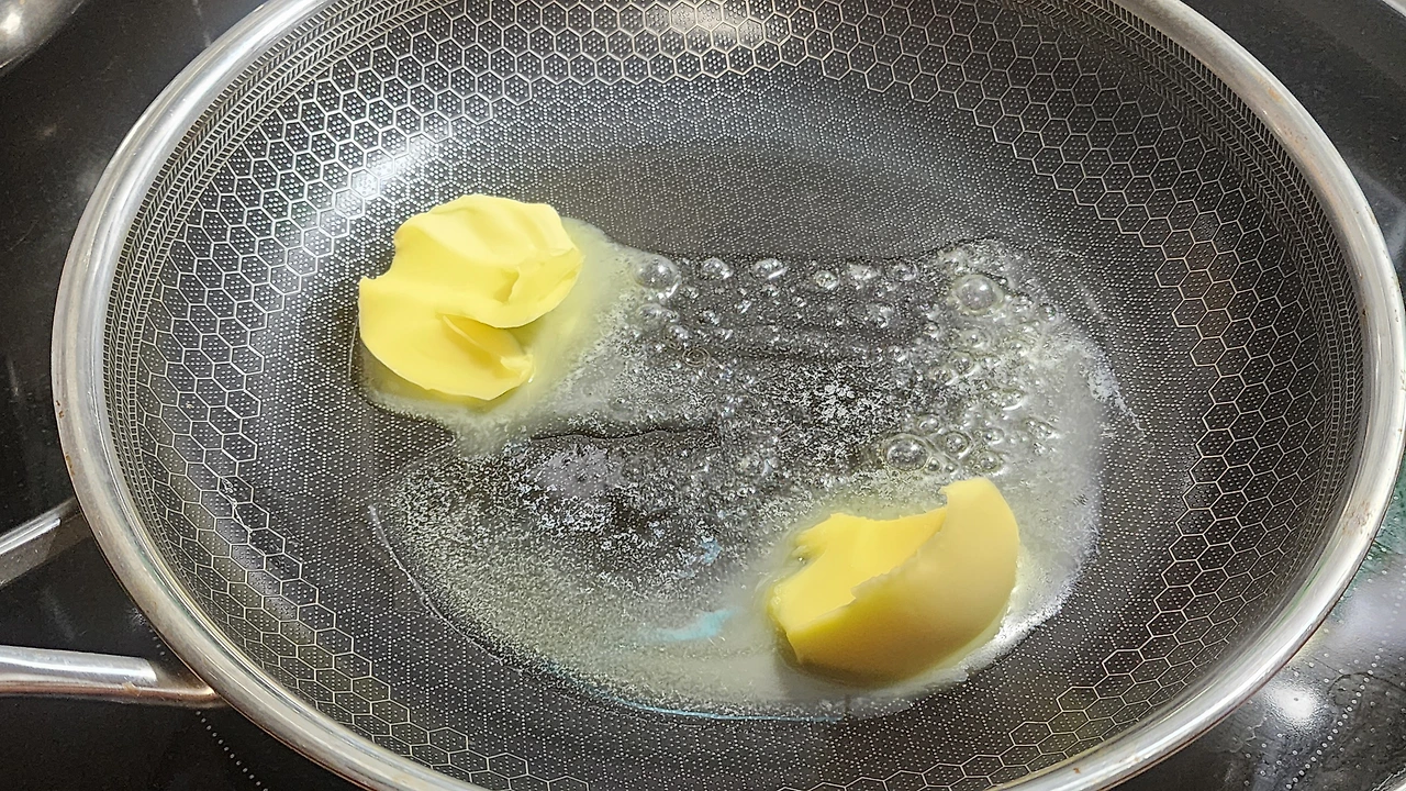 - 프라이팬에 버터를 녹여준다