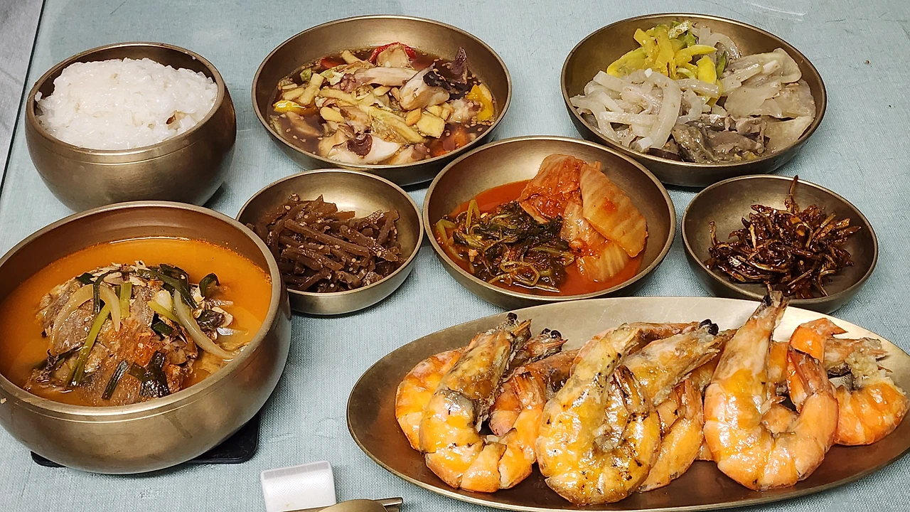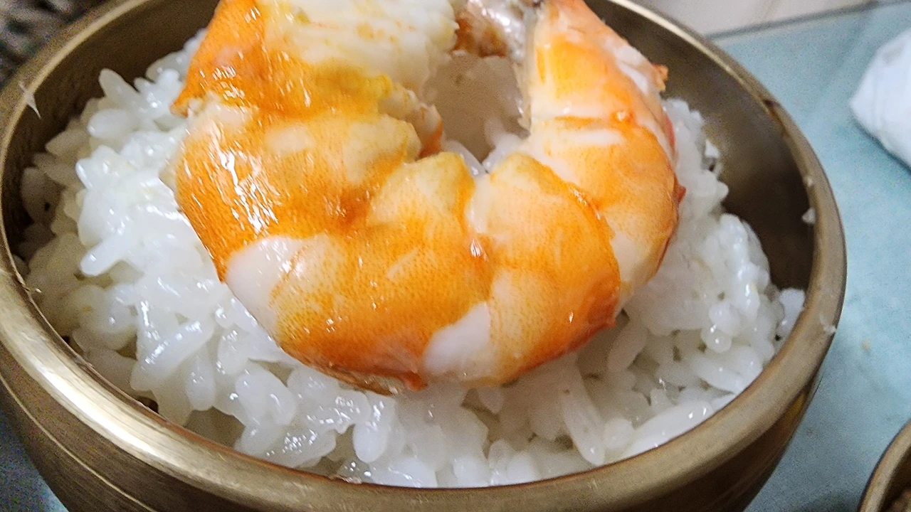 새우 까서 밥 위에 올 려주는