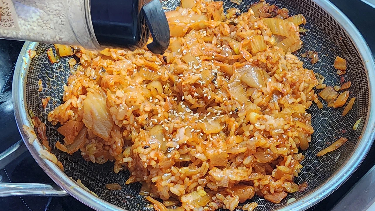 -팝을 넣고 볶아준. 후 깨소금을 넣어준다