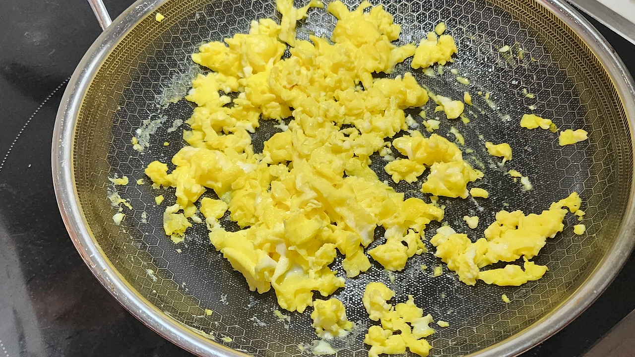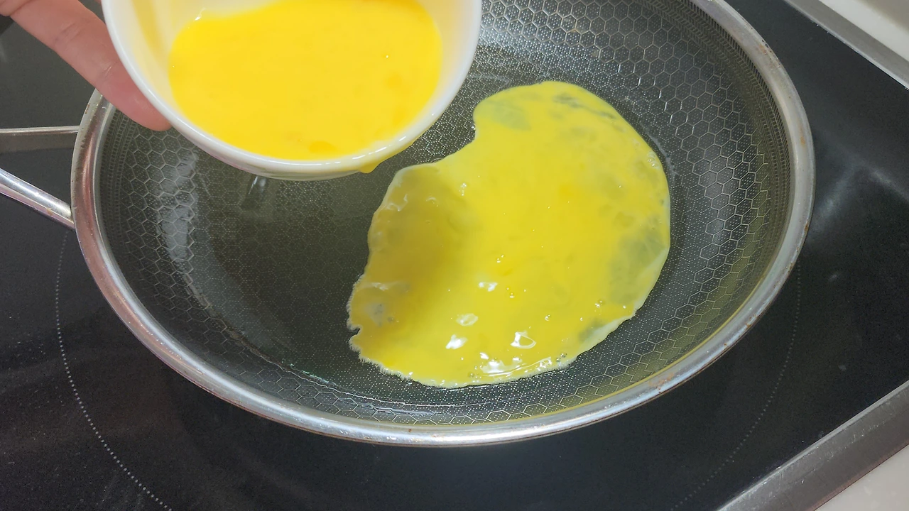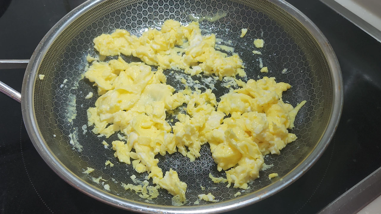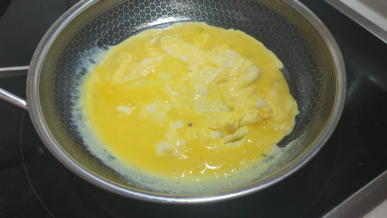1. 계란, 소금을 야간 넣고 스크램블을 만들어 준다