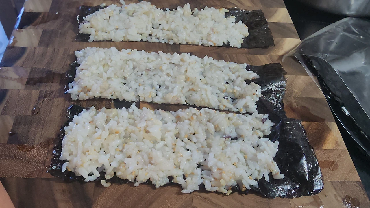 -김은 반으로 잘라 서로 붙여준 후 밥을 올려준다