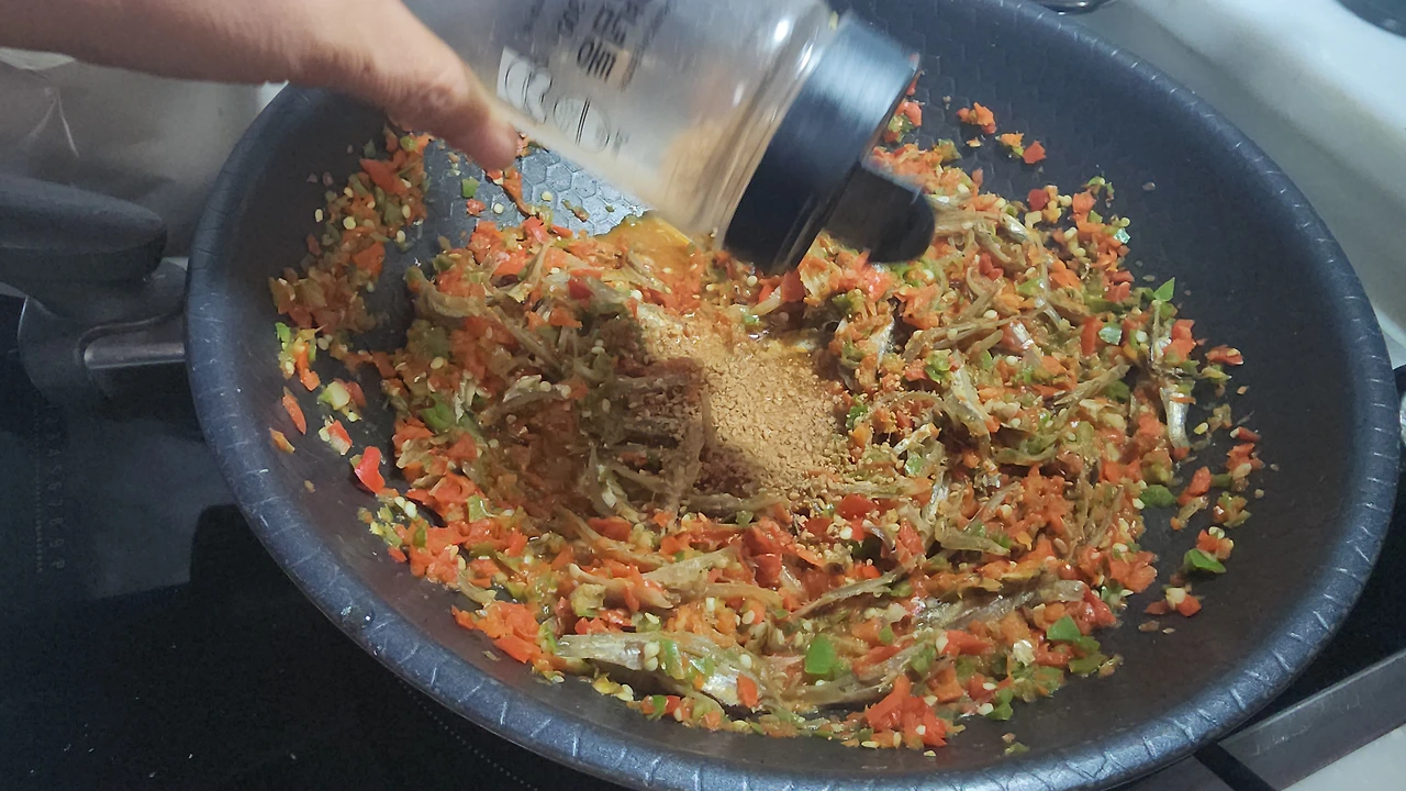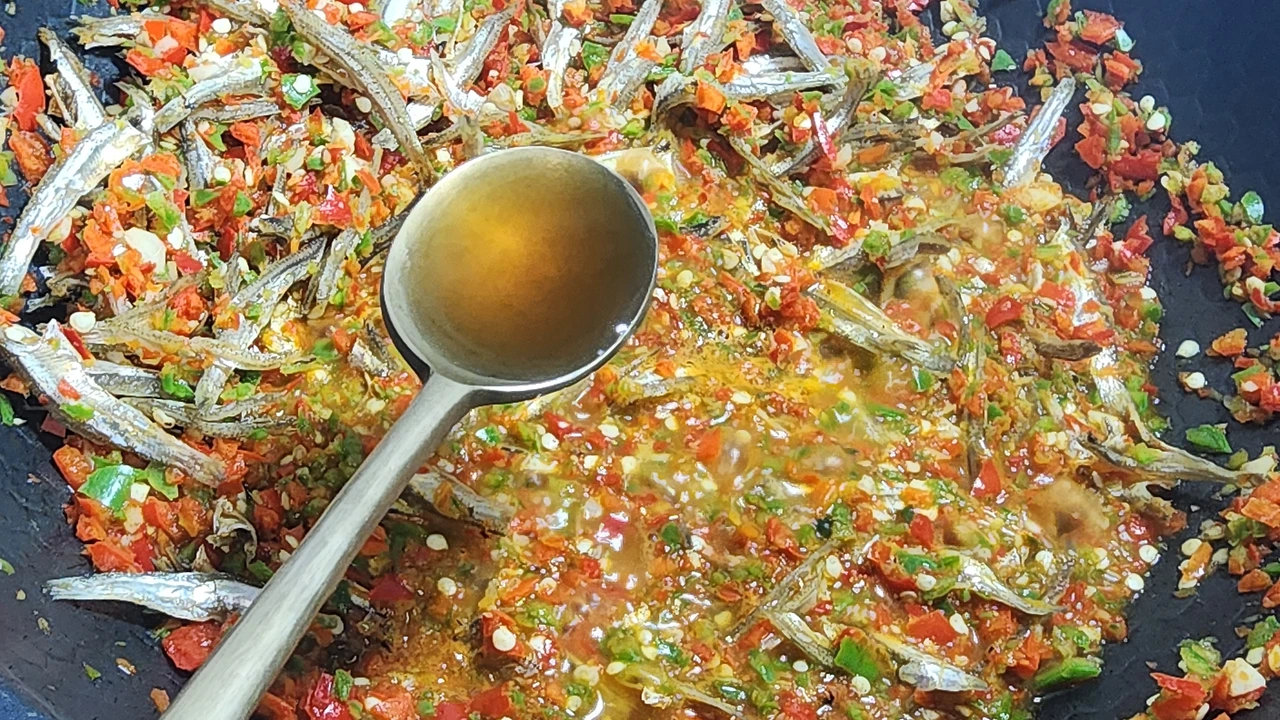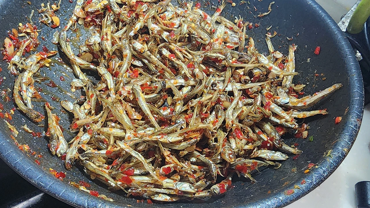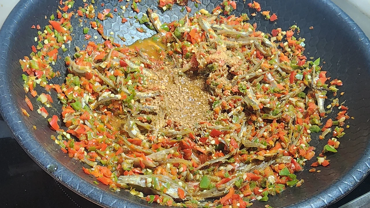_멸치, 고추청을 넣고 볶아준다