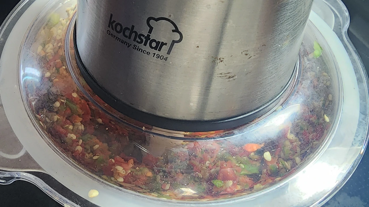 -식초물에 씻은 고추는 잘라 믹스기에 갈아준다