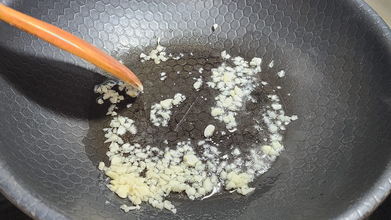 -식용유 마늘을 볶아준다