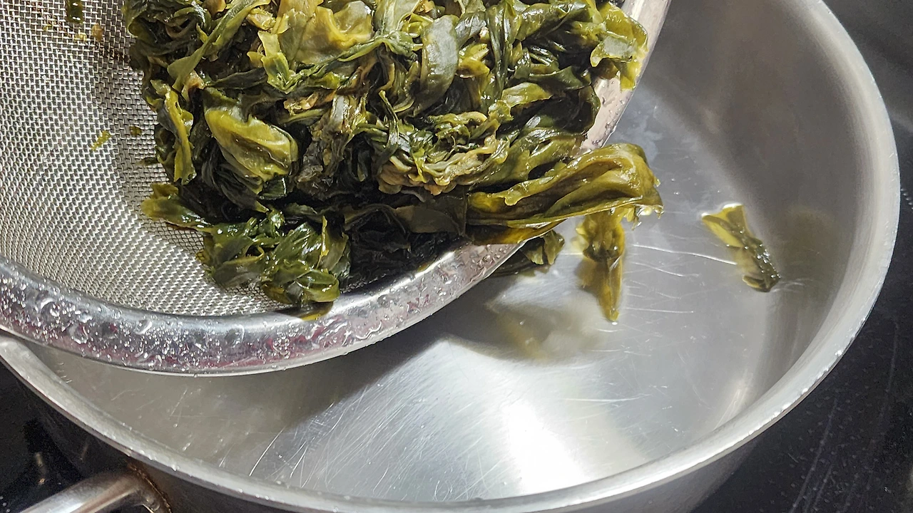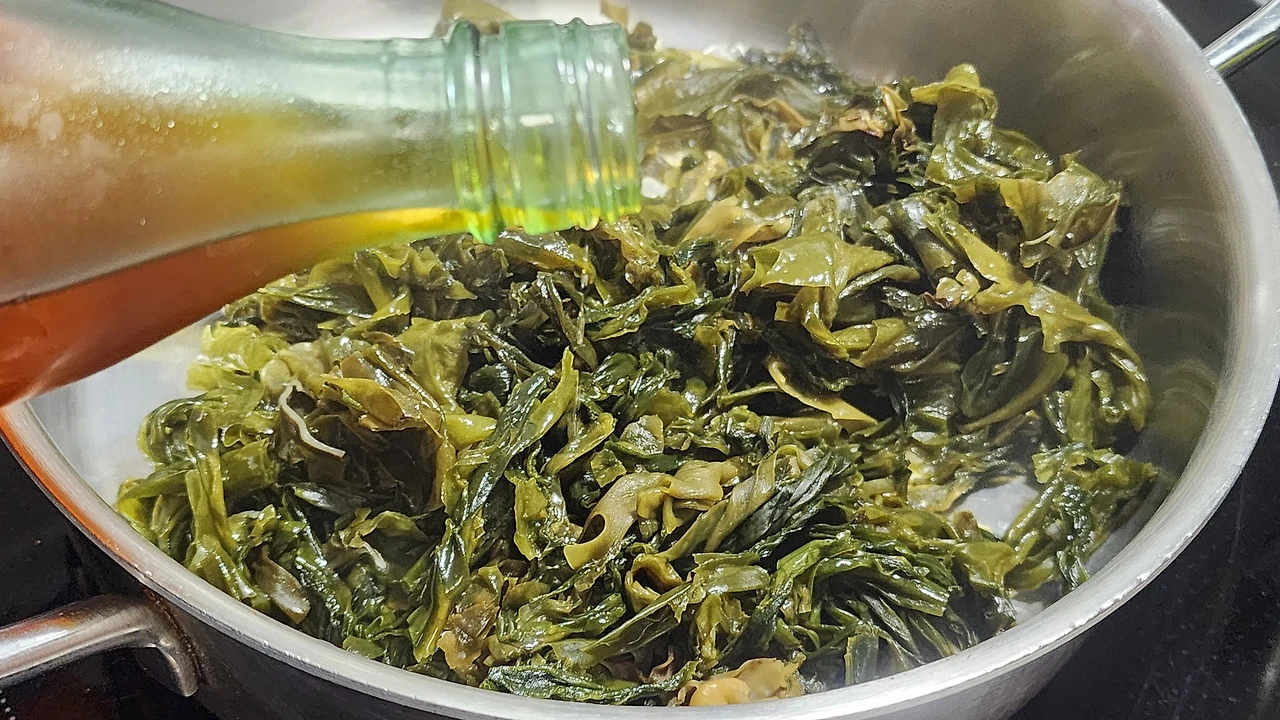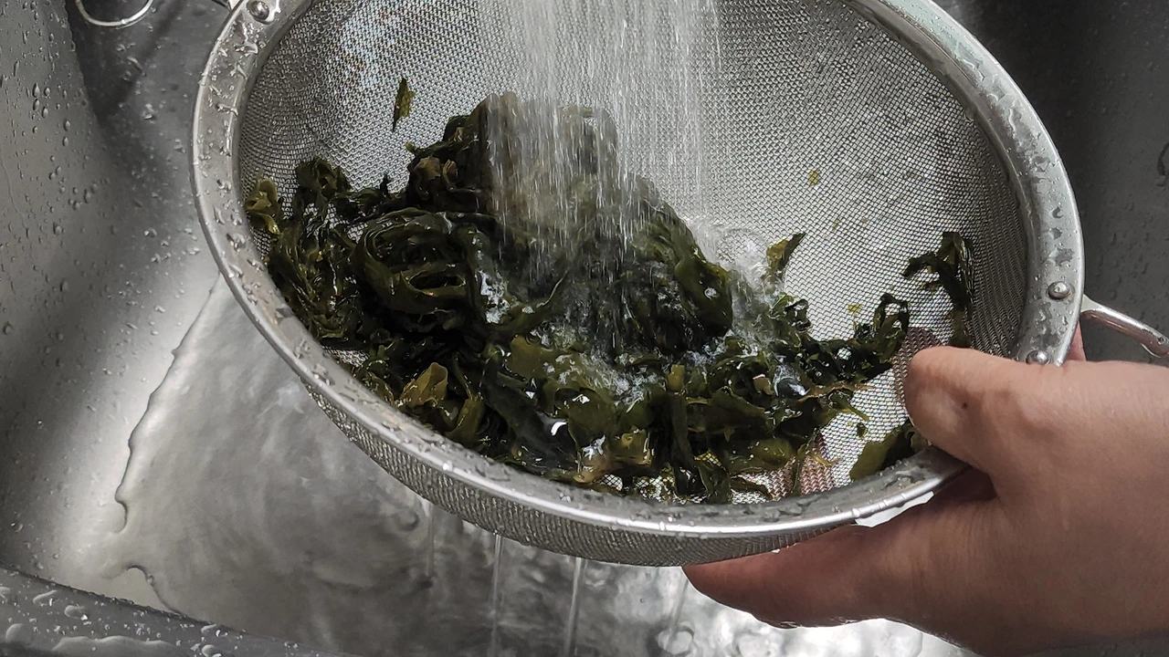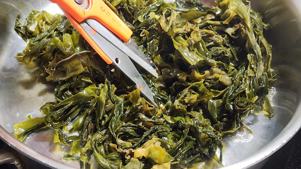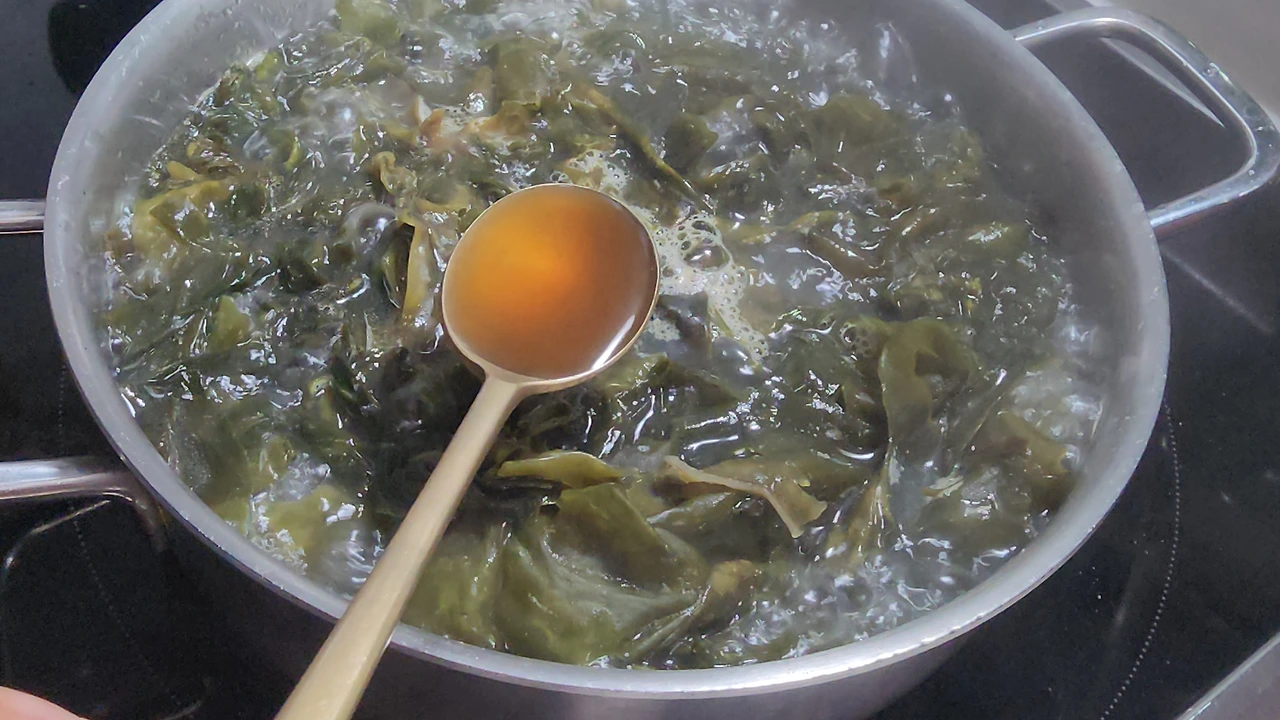 -미역을 냄비에 넣고 참기름으로 볶아준다