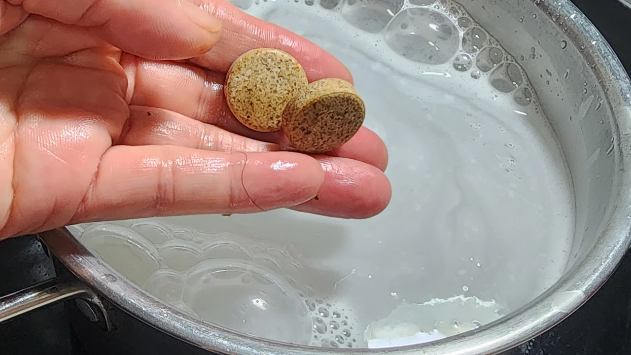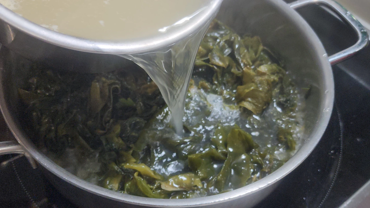 -쌀뜨물에 동전육수 2개를 넣고 끓여둔다