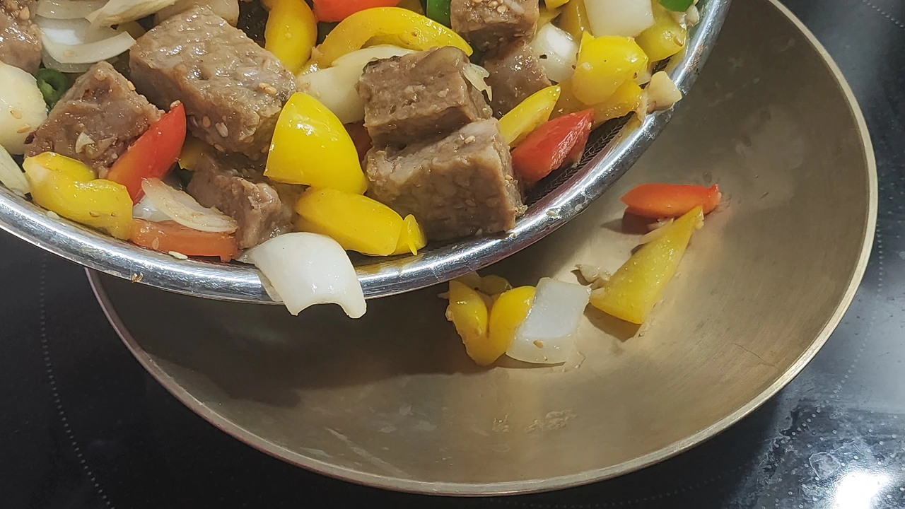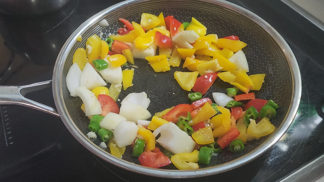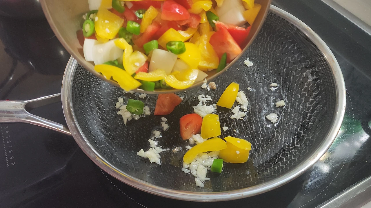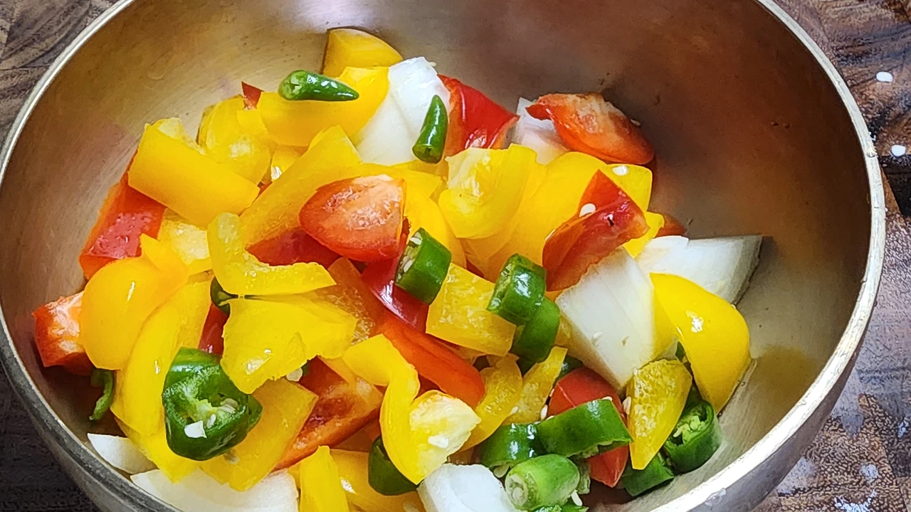 -파프리카, 양파 청양초는 먹기 좋게 썰어준다
