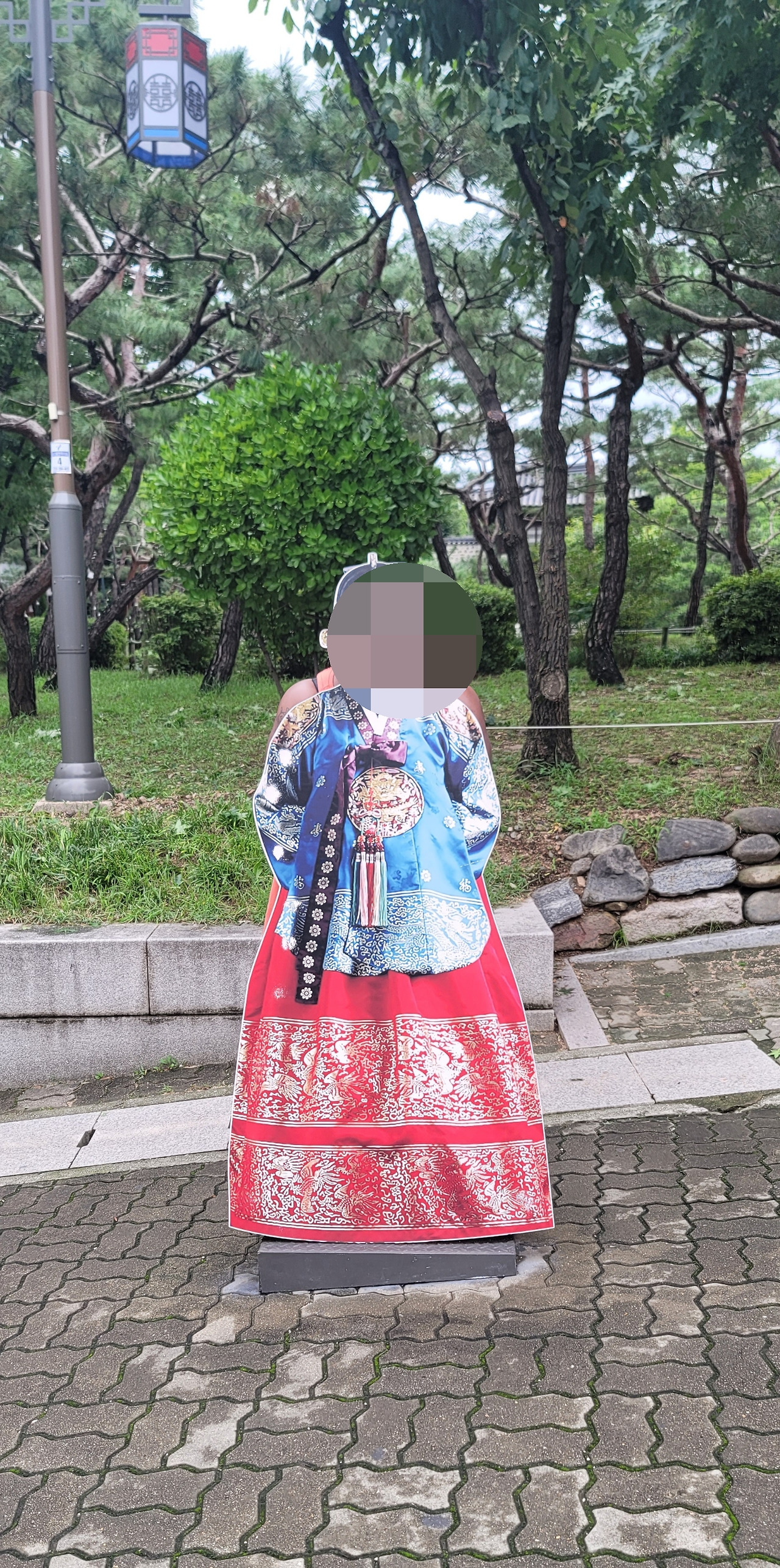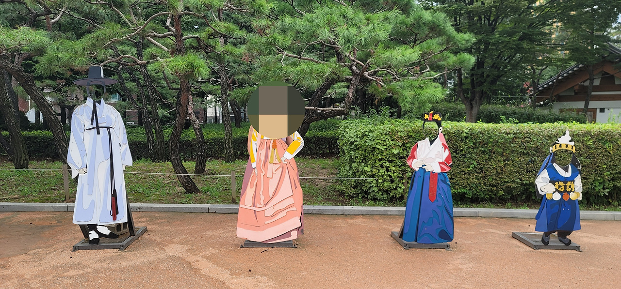 30분 정도 걸어 우리는 남산골 한옥마을에 도착했다. 작은 폭포와 냇물, 잉어가 유유자적 헤엄치는 연못과 정자를 바라보았다. 한적하고 평화롭다. J와 JF는 엄지척을 했다. J와 JF는 포토존을 발견하고 동그란 구멍에 얼굴을 들이밀었다. 얼른 내가 사진을 찍었다. 내일 한복 입고 경복궁을 돌아다닐 거라며 둘은 깔깔거리며 좋아했다.
