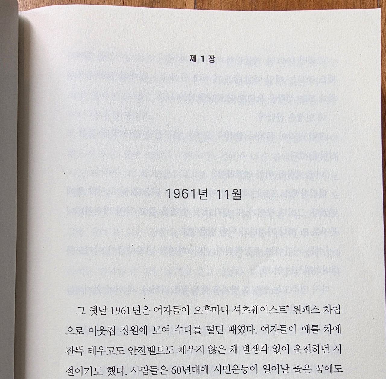 가머스는 또한 1963년에 발간된 베티 프리던의 <여성성의 신화>에서도 영감을 받았다. 프리던의 책이 나온 1960년대를 소설의 배경으로 설정하고 성 역할의 고정관념과 여성 차별이 만연했던 그 시대를 그려냈다. 작품 제1장의 제목은 '1961년 11월'이다. 당시 엘리자베스는 서른 살로 지금 살아 있다면 94세가 되었을 것이다. 가머스의 어머니 세대다.