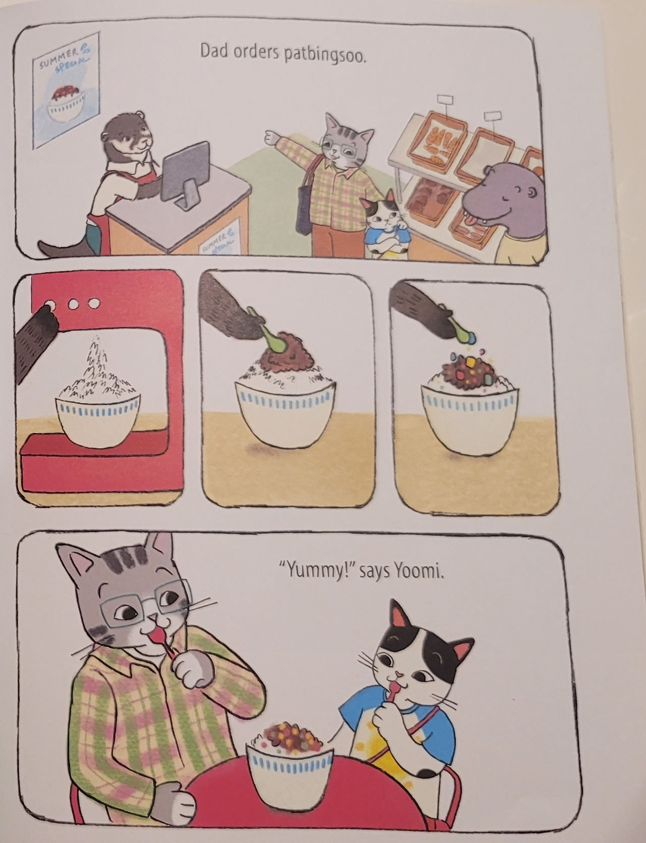 후식으로는 서니베일 동쪽에 위치한 샌타클라라에 가서 팥빙수를 먹자고 했다. 우유눈꽃빙수로 유명한 '설빙'이 샌타클라라에 있단다. 요즘 손녀가 즐겨 읽는 <코리아타운에서 신나는 일요일> 동화책에 꼬마 주인공 유미가 아빠랑 팥빙수를 먹는 장면이 나온다. 손녀는 자기도 팥빙수를 아주 좋아하며 아빠, 엄마랑 같이 팥빙수를 먹으러 갔었다는 얘기를 해줬다. 지금 프리스쿨에 있어 손녀가 같이 가지 못해 아쉽다.그래도 집에서 조금만 운전하고 나오면 팥빙수를 비롯해 한국 음식을 먹을 수 있고 한인마트도 갈 수 있어 마음이 놓인다.80년대에 우리가 미국에서 유학할 때는 근처에 한국 음식점이 하나도 없었다. 새삼 한국의 발전된 위상이 느껴져 뿌듯함이올라온다.