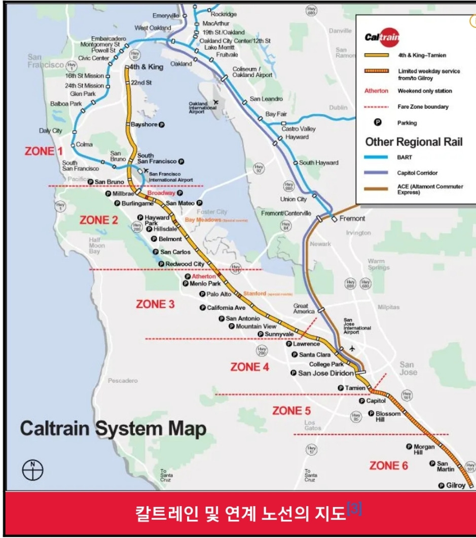 칼트레인(Caltrain) 노선 (출처: 구글맵)