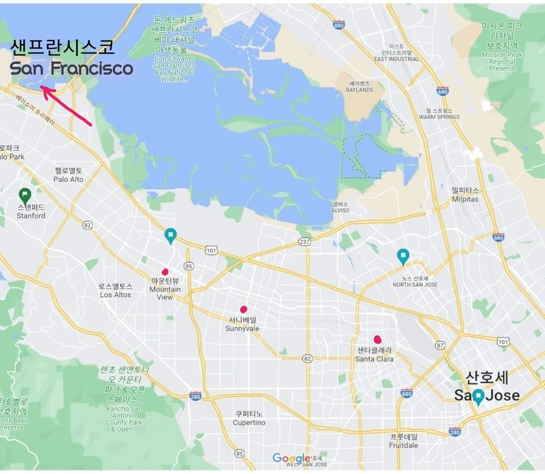 마운틴뷰, 서니베일, 샌타클라라 (구글맵)