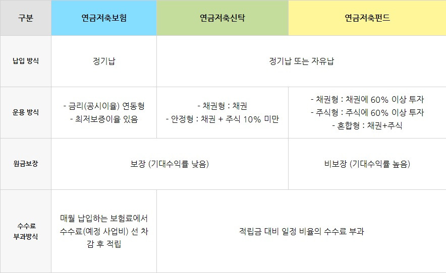 세 가지 연금저축들의 차이점에 대해서 하나씩 알아보겠습니다.