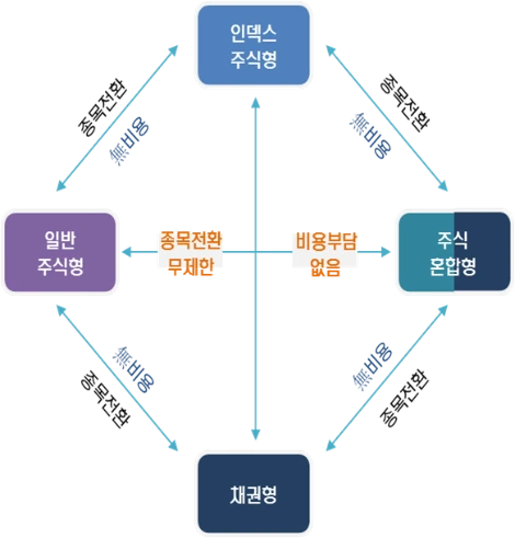 보통의 펀드는 환매 시 환매수수료가 부과되는데 연금저축계좌 안의 펀드는 환매수수료가 없습니다. 그래서 아무런 비용 부담 없이 다른 펀드로 갈아탈 수 있습니다.