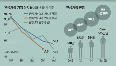 해지는 꽤 빈번하게 일어나고 있습니다. 연금저축 가입자는 늘어나고 있지만, 유지율은 계속해서 내려가고 있습니다. 왜 그럴까요? 노후보다는 당장에 돈이 급해서 그렇겠죠. 겨우 3년 만기 적금 유지율도 50%가 안 되는 게 현실입니다.