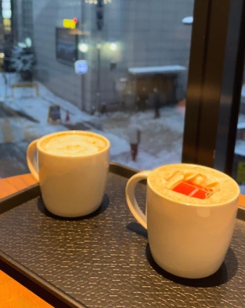 당신이 잠시 후, 따뜻하고 크림이 잔뜩 올려진, 음료 두 잔을 가지고 자리로 올라온다. 첫 모금에 느껴지는 달고나 향의 따뜻한 감촉은, 칼로리의 죄책감마저 느끼지 못하게 심장을 감싸 안아버린다.