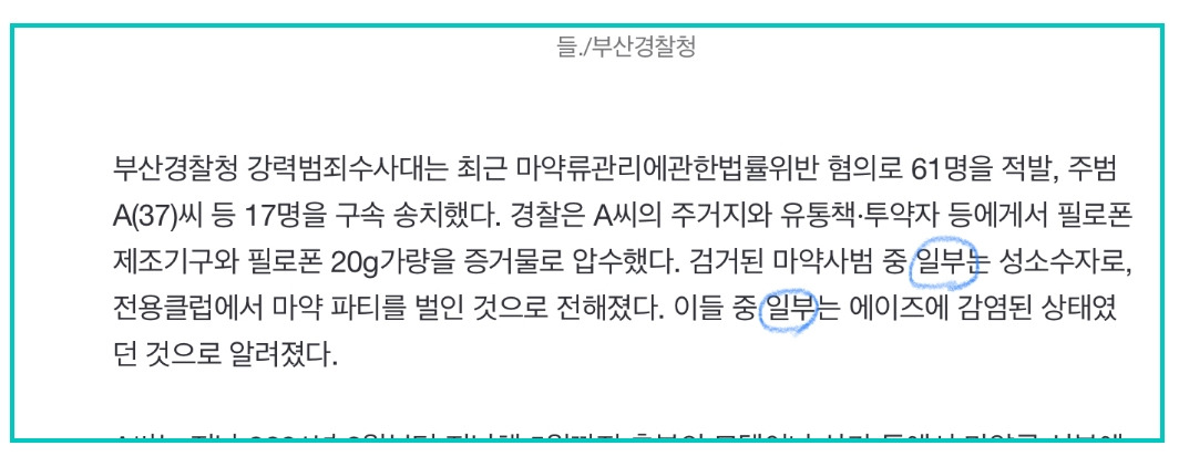 더군다나, 다른 언론을 조금만 검색해 보면 경찰이 직접 밝힌 내용이 나오는데 , 이들 중 ‘성소수자가 일부 포함되어 있었고’ 또한 ‘일부가 에이즈 감염자였’을 뿐이다.