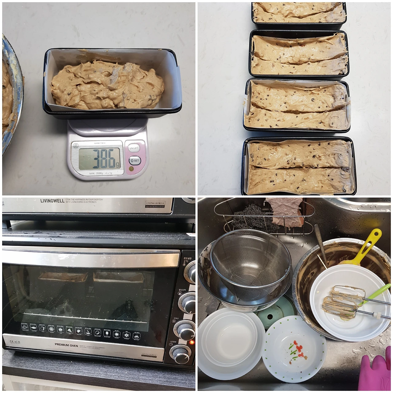 *시나몬 파운드케이크 레시피*수량; 오란다팬(중) 4개소요시간; 2시간재료;- 밀가루 360g (박력분 200, 중력분 160)- 무염버터 280g- 계란 280g- 설탕 280g- 소금 5g- 베이킹파우더 10g- 시나몬분말 12g- 커피분말 5g- 호두분태 160g- 다크초콜릿칩 140g- 우유 40g- 럼주 or 브랜디 10g 계 1,582g