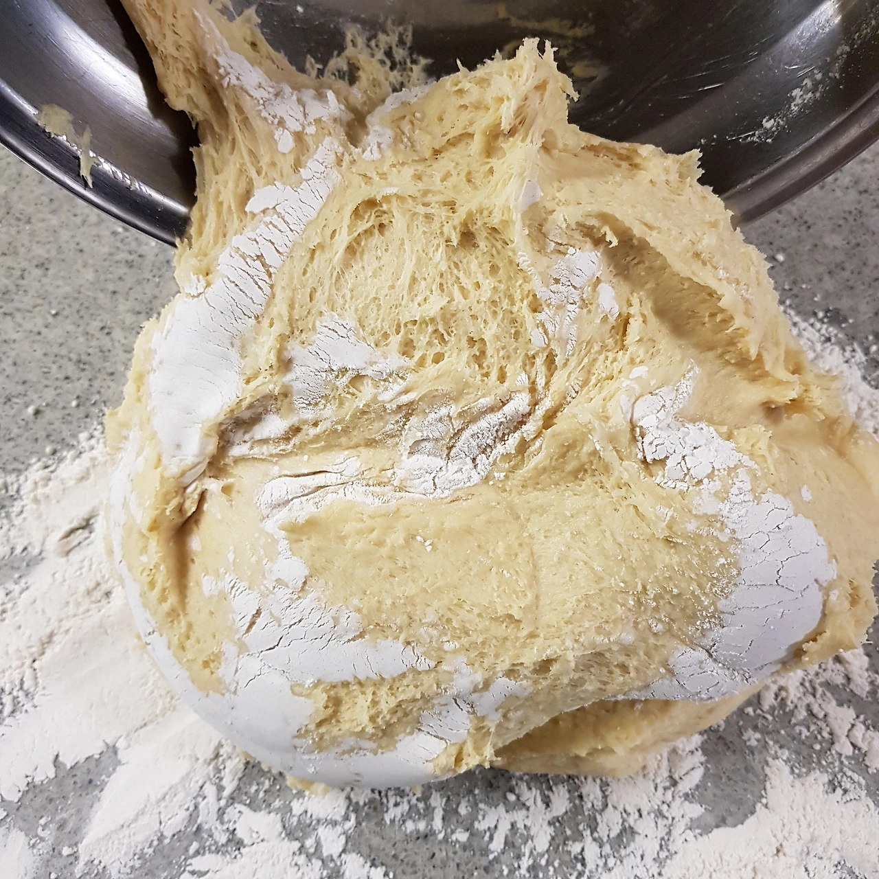 위 재료를 몽땅 반죽기 볼에 넣고 1단으로 천천히 돌리다가 날가루가 보이지 않으면 2단 -> 3단으로 변속하여 총 8분가량 돌려준다.