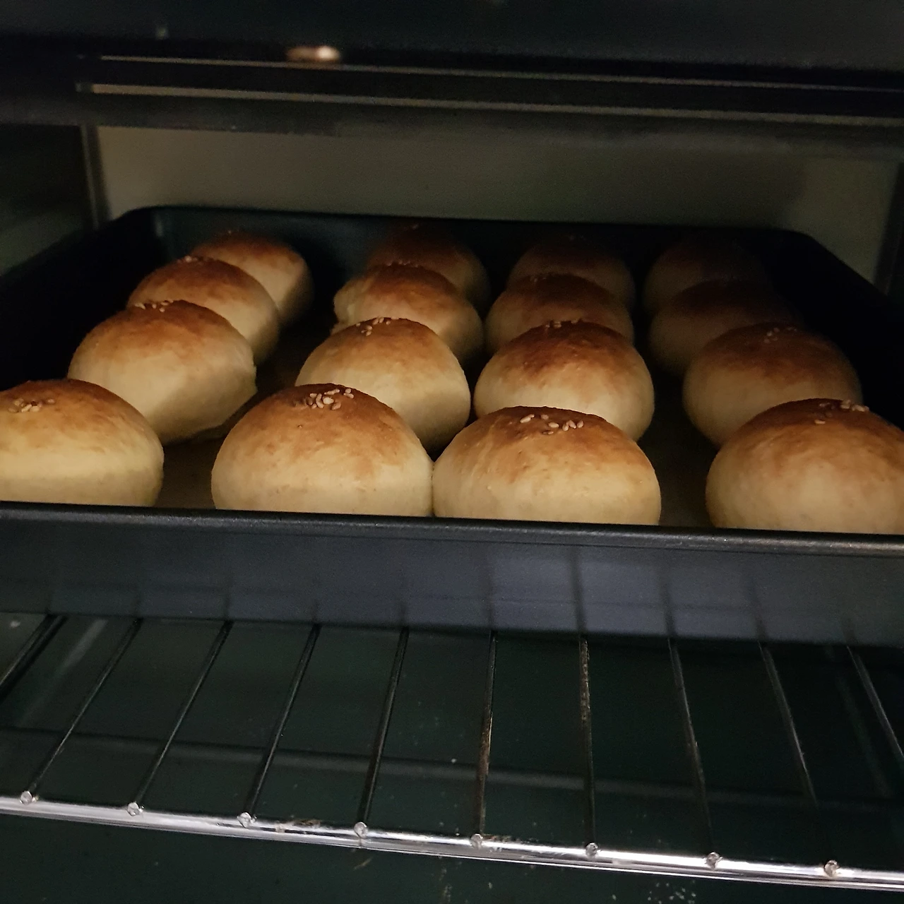 중간에 구움색이 나면 팬 위치를 180° 돌려주어 빵 색깔이 골고루 나도록 함.