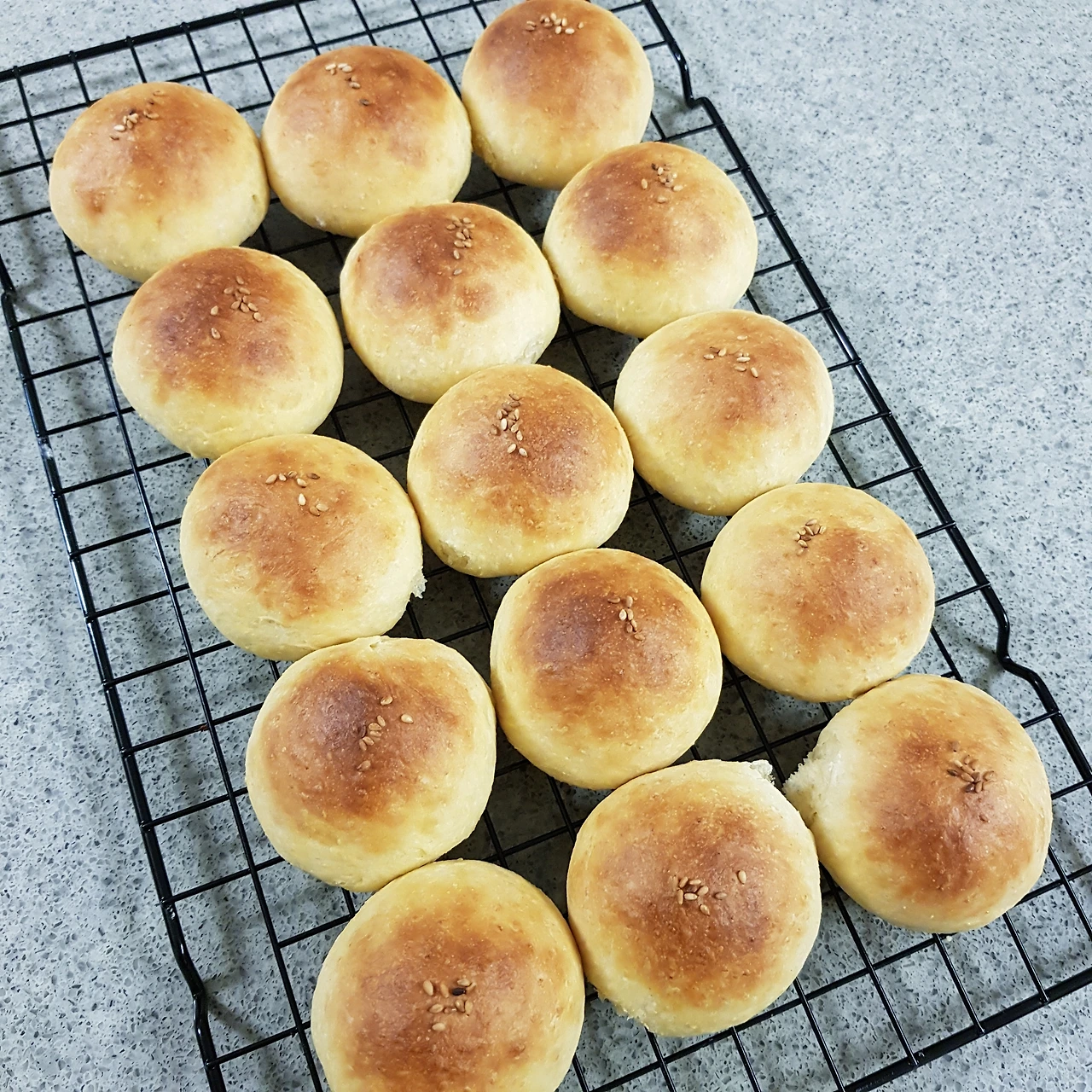 이렇게 만들어진 모닝빵은 몽땅 냉장고 냉동실에 넣어 보관하다가.. 필요할 때 내놓아 1~2시간 자연해동 후.. 간편한 아침 식사 또는 커피랑 간식으로 또는 산에 갈 때 먹거리로 한 봉다리 들고 가면 됨.