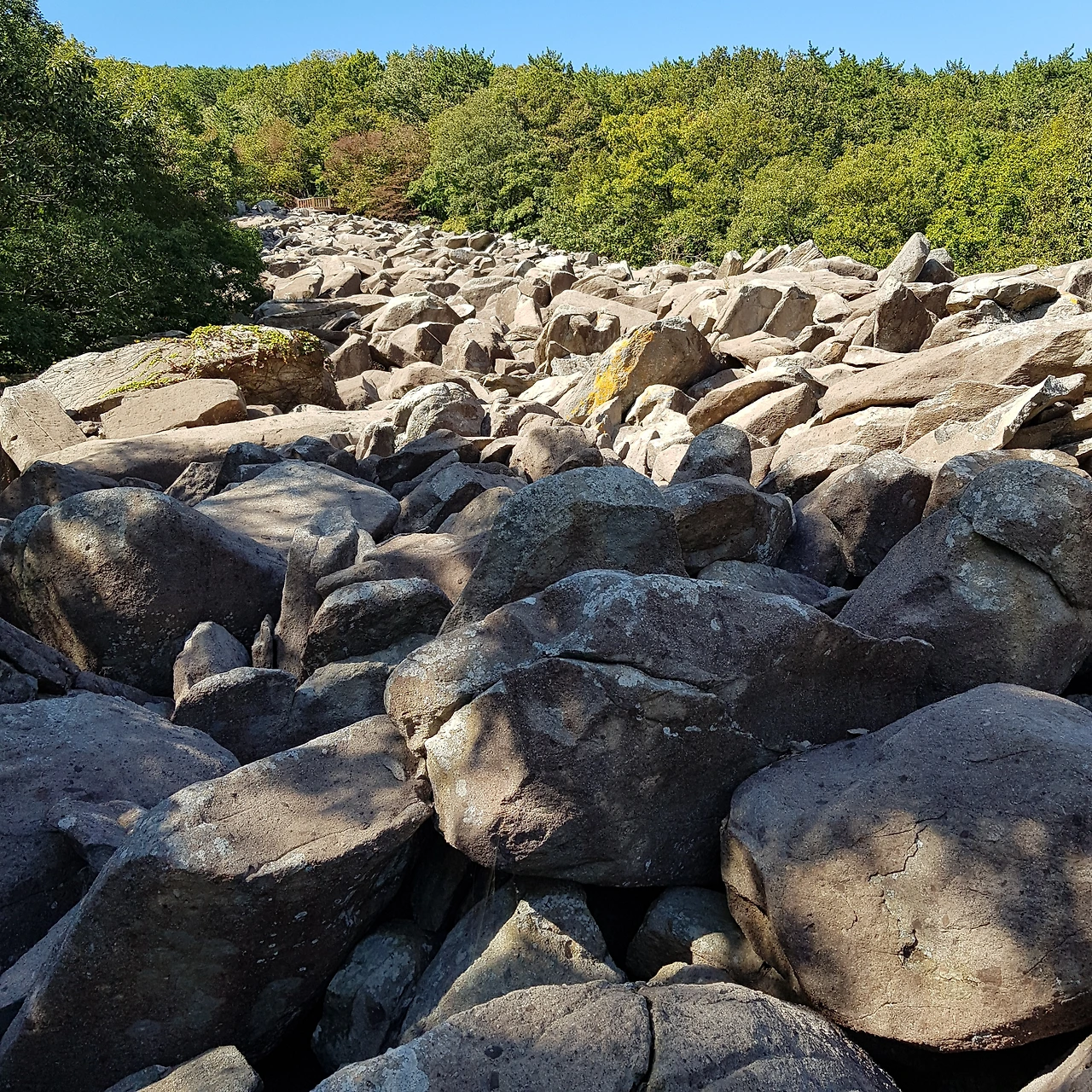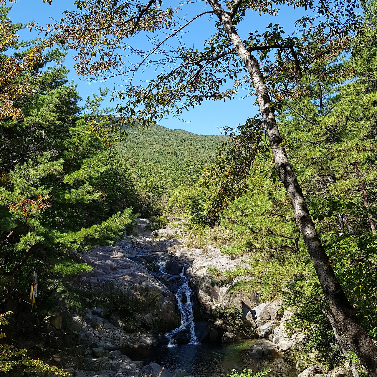 규모가 그리 크지는 않지만 그래도 물줄기가 떨어지는 곳의 수심이 3m가 넘는 폭포도 있고, 별칭이 돌산답게 위쪽에서 굴러 내린 돌무더기도 구경하면서 한걸음 한걸음 앞으로 나아갔다.