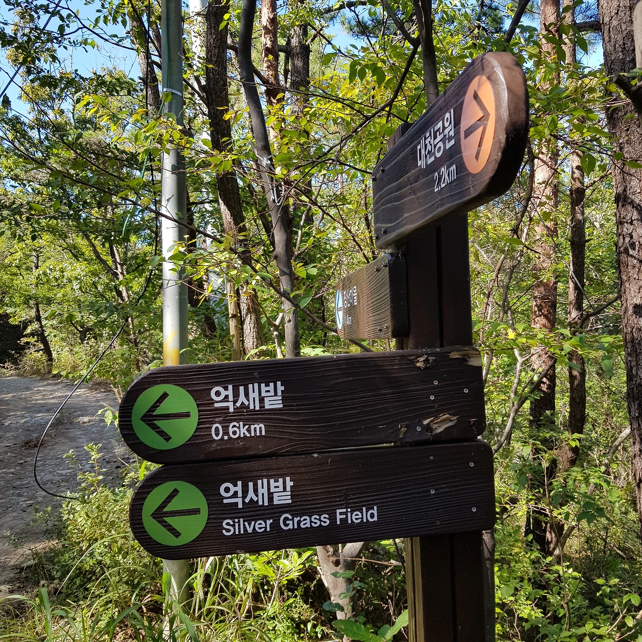 산 정상까지 오르기엔 내 체력에 무리라고 일찌감치 판단한 나는, 8부 능선쯤에 있는 억새밭까지만 오르기로 결정하고 이정표를 확인하였다.