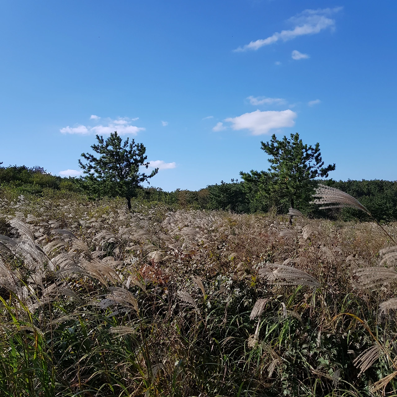 바람에 일렁이는 억새의 물결과 푸른 하늘과 하얀 구름과의 조화. 역시 한국의 가을은 기대를 저버리지 않는군!