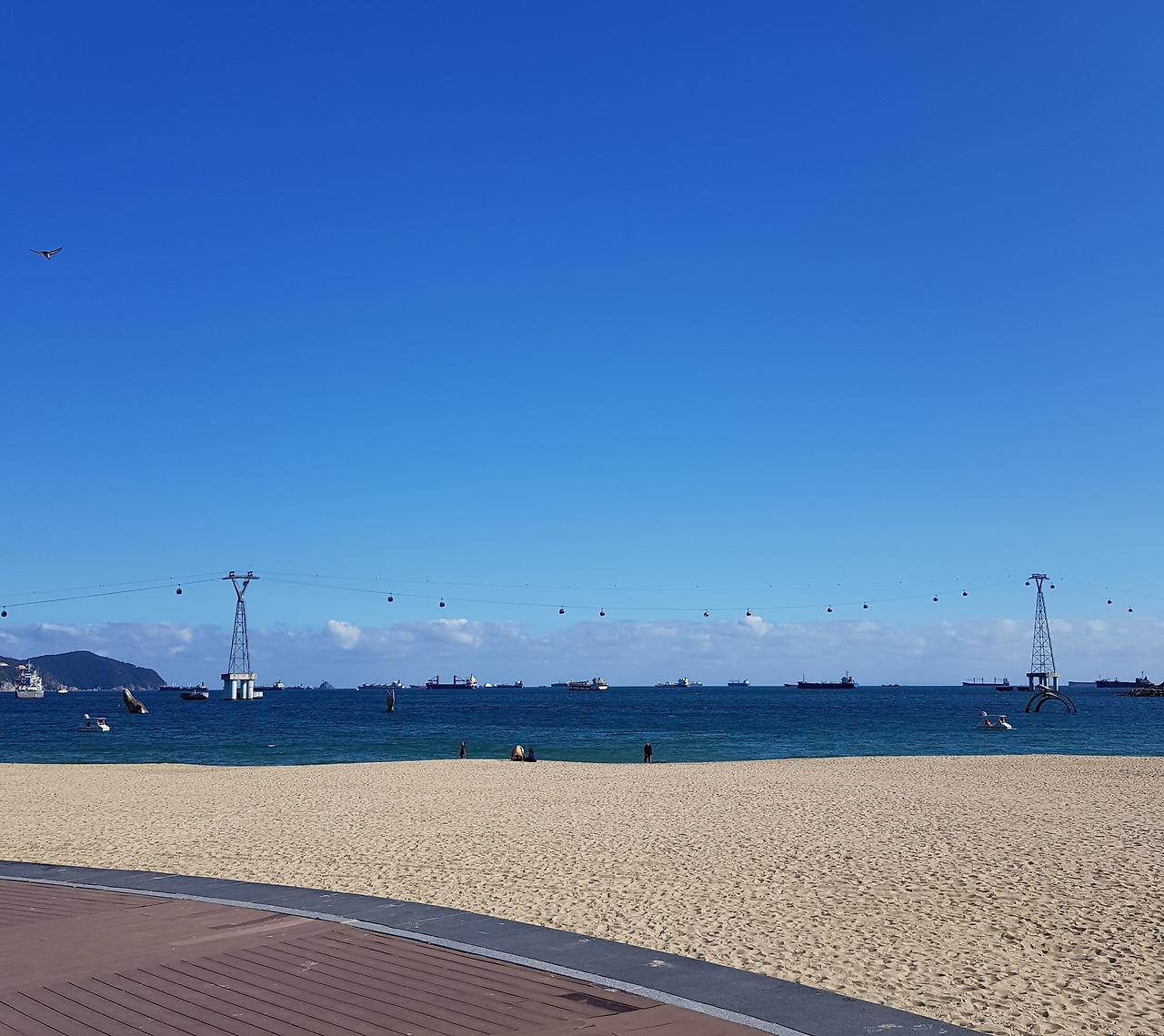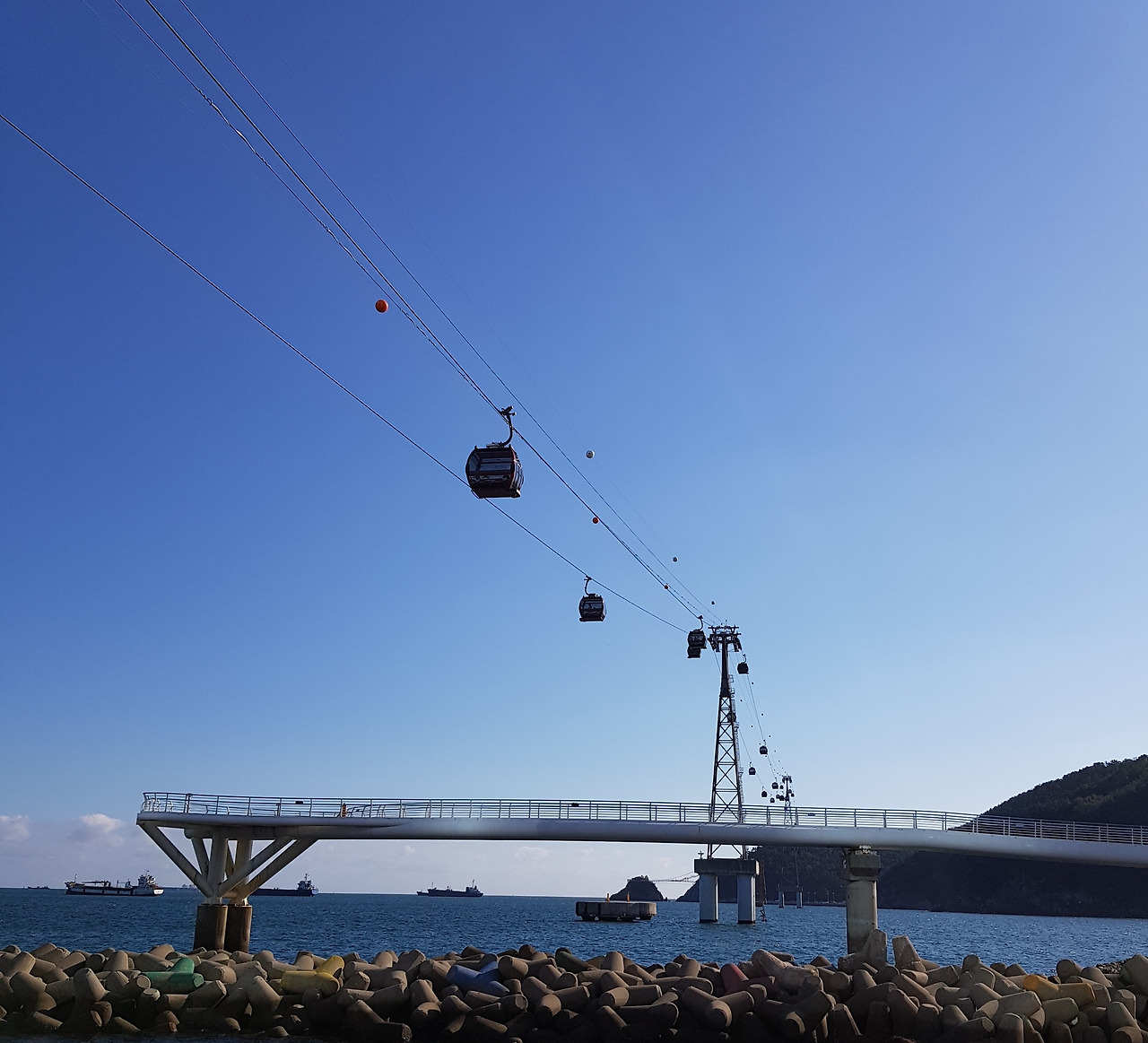 송도해수욕장은 내가 대학교에 다니던 시절 과 단합회식 등으로 가끔 가던 곳이었는데, 세월이 세월이니만큼 엄청난 변화가 있었다. 우선은 바닷가 바로 옆에 초고층 아파트가 들어서 있었고 구름다리며 해안가 산책로 등이 잘 갖추어져 있었는데, 아쉽게도 지난번 태풍 때 피해를 입어 곳곳에 출입금지 팻말이 세워져 있었다. 한편 2017년부터 새롭게 해상 케이블카가 운행되고 있어서 부산 사람들은 물론 외지인과 외국인들도 많이 찾는 관광명소가 되어 있었다.